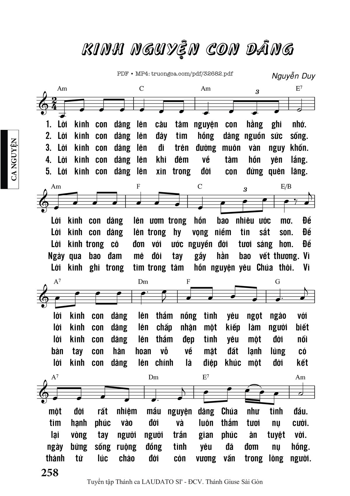 Trang 1 của Sheet nhạc PDF bài hát Kinh Nguyện Con Dâng - Nguyễn Duy