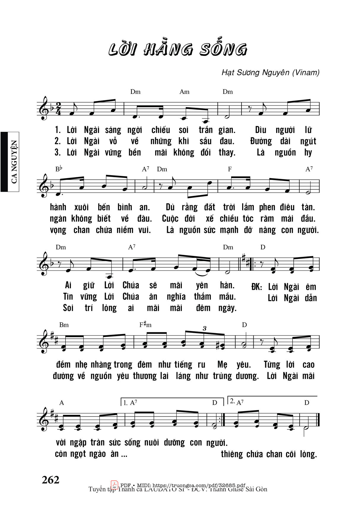 Sheet nhạc có nốt Lời Hằng Sống của nhạc sĩ Vinam và file PDF nốt nhạc đăng lên đây nhằm giúp các bạn xướng âm cho đúng nốt và hát thêm hay, chỉ mang tính chất tham khảo, không có mục đích thương mại. Bản quyền thuộc về tác giả và tổ chức nắm bản quyền, Truongca.com không giữ bất kỳ bản quyền của nội dung nào cả. Các bạn có thể tải về bản PDF chất lượng cao, gồm khuông nhạc có nốt với đường link file PDF bên trên.