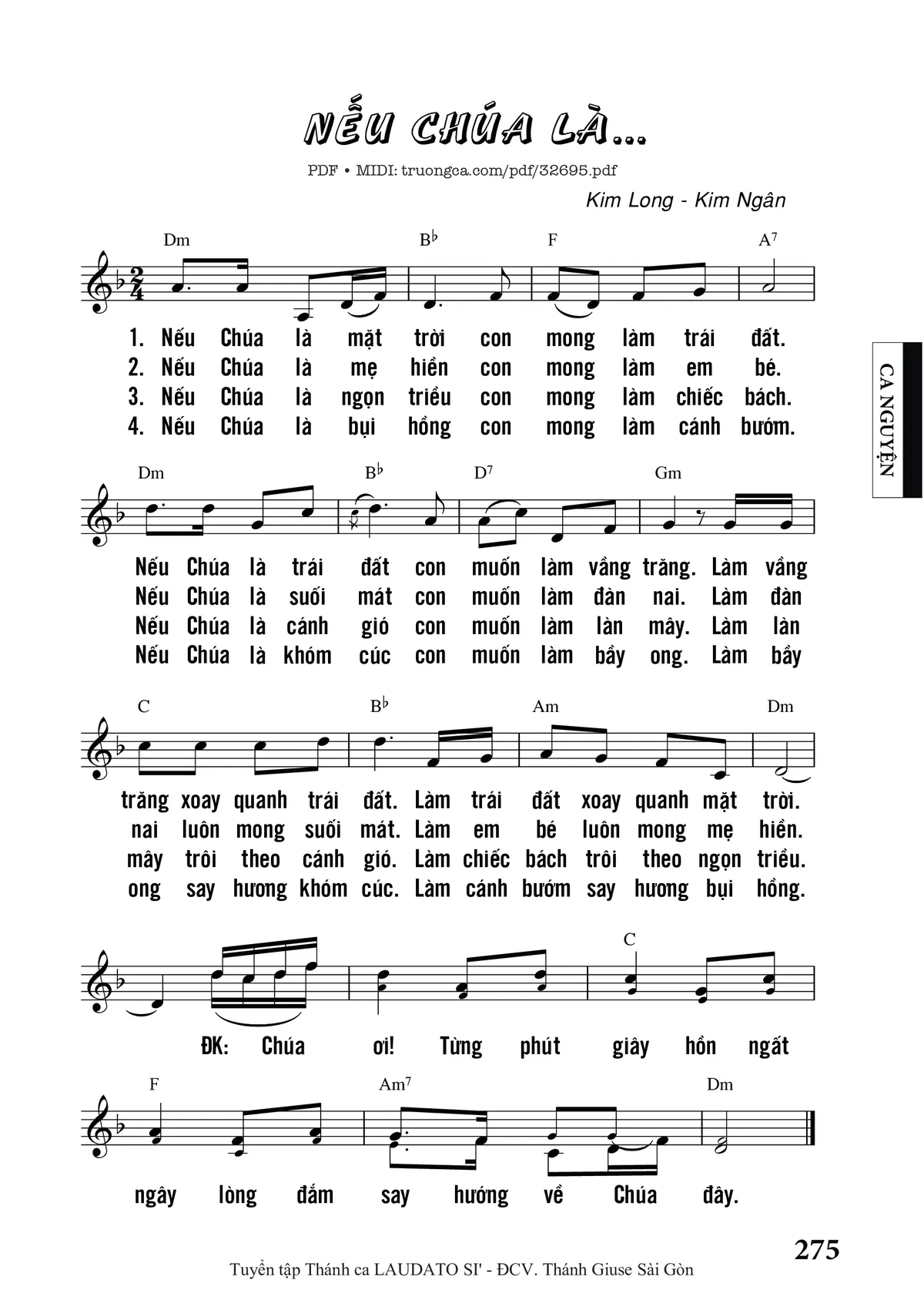 Sheet nhạc có nốt Nếu Chúa Là của nhạc sĩ Kim Long & Kim Ngân và file PDF nốt nhạc đăng lên đây nhằm giúp các bạn xướng âm cho đúng nốt và hát thêm hay, chỉ mang tính chất tham khảo, không có mục đích thương mại. Bản quyền thuộc về tác giả và tổ chức nắm bản quyền, Truongca.com không giữ bất kỳ bản quyền của nội dung nào cả. Các bạn có thể tải về bản PDF chất lượng cao, gồm khuông nhạc có nốt với đường link file PDF bên trên.