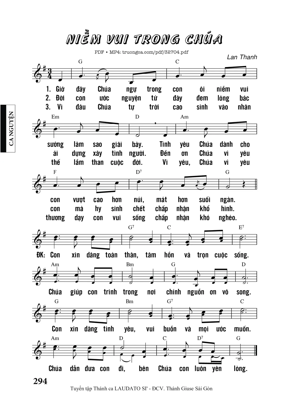 Trang 1 của Sheet nhạc PDF bài hát Niềm Vui Trong Chúa - Lan Thanh