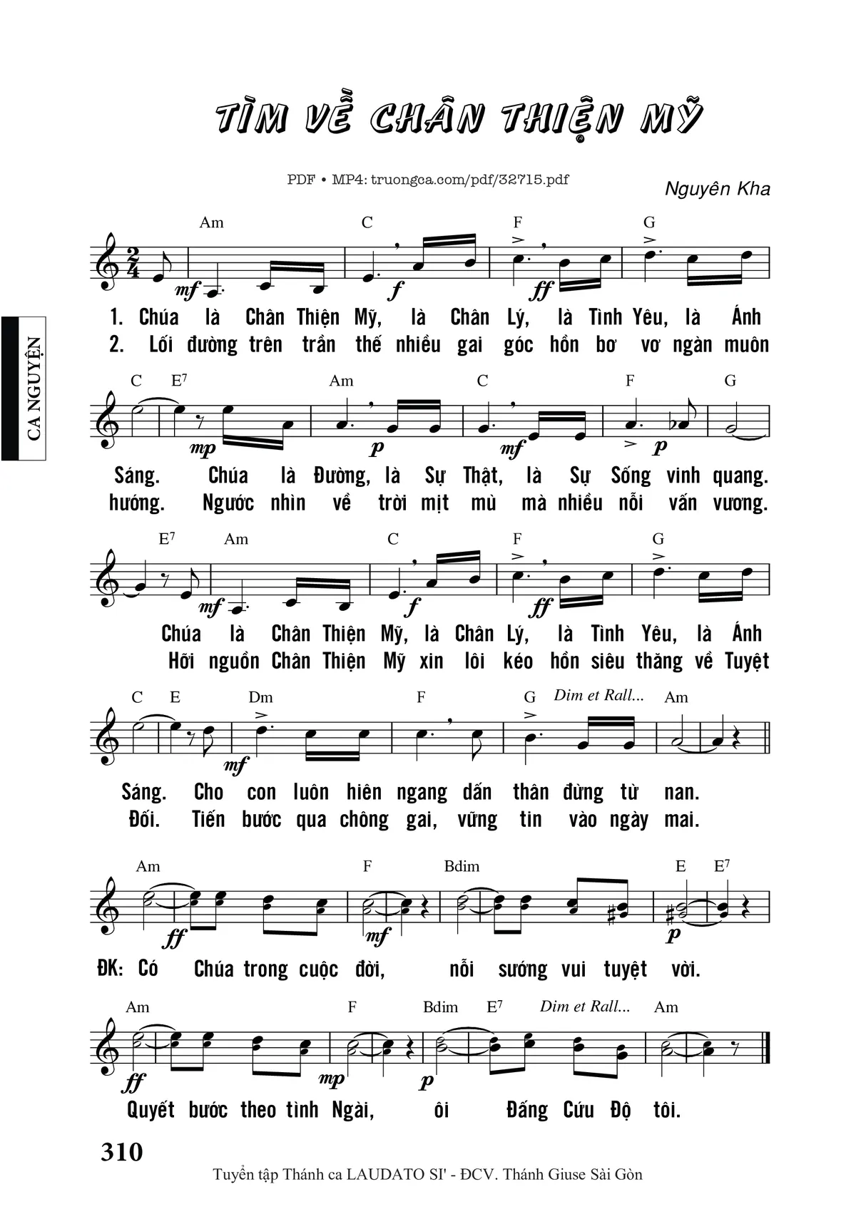 Trang 1 của Sheet nhạc PDF bài hát Tìm Về Chân Thiện Mỹ - Nguyên Kha