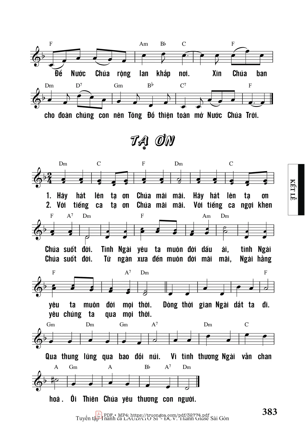 Sheet nhạc có nốt Tạ Ơn của nhạc sĩ Khuyết danh và file PDF nốt nhạc đăng lên đây nhằm giúp các bạn xướng âm cho đúng nốt và hát thêm hay, chỉ mang tính chất tham khảo, không có mục đích thương mại. Bản quyền thuộc về tác giả và tổ chức nắm bản quyền, Truongca.com không giữ bất kỳ bản quyền của nội dung nào cả. Các bạn có thể tải về bản PDF chất lượng cao, gồm khuông nhạc có nốt với đường link file PDF bên trên.