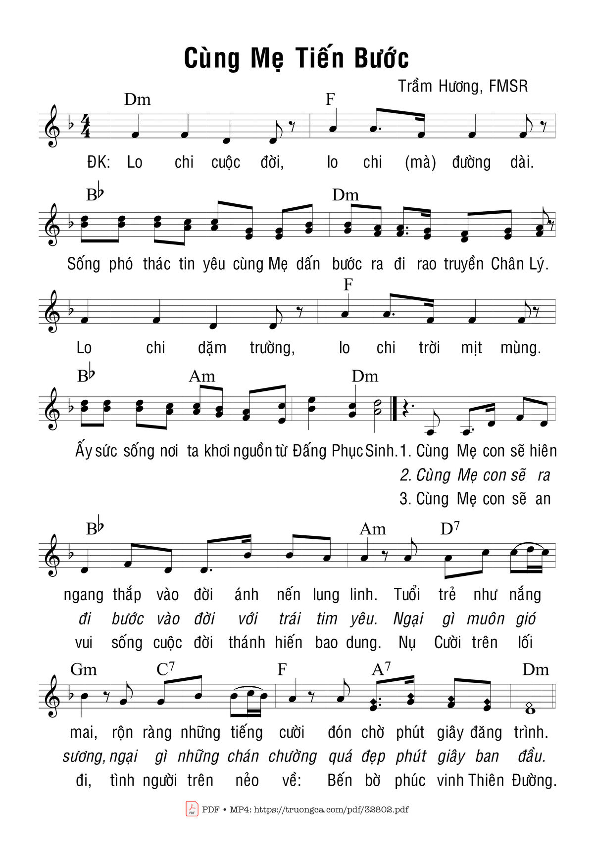 Sheet Cùng Mẹ Tiến Bước PDF (Trầm Hương), hợp âm