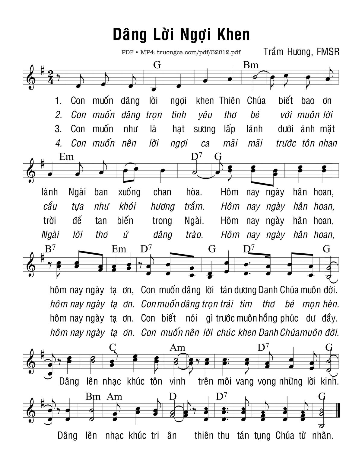Trang 1 của Sheet nhạc PDF bài hát Dâng Lời Ngợi Khen - Trầm Hương