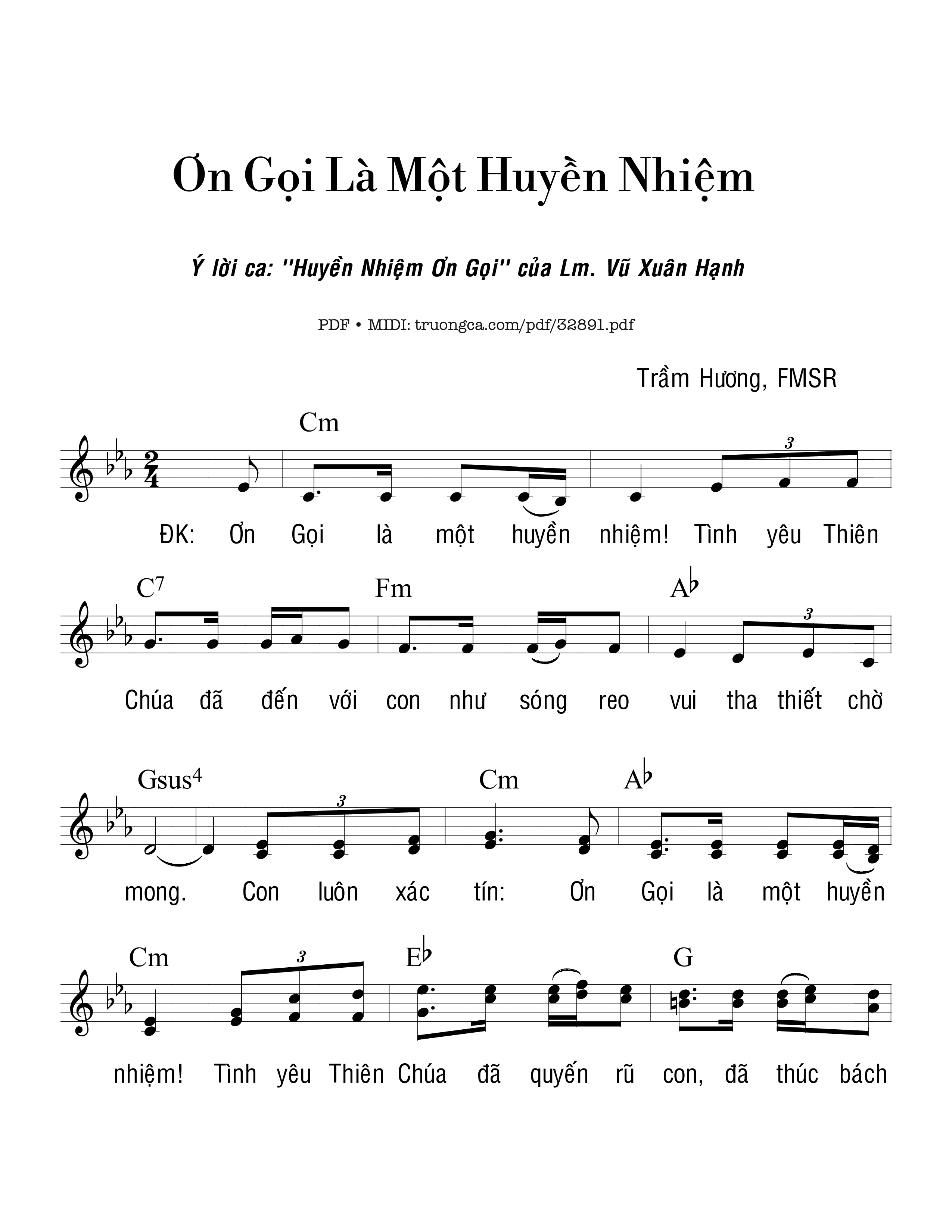 Trang 1 của Sheet nhạc PDF bài hát Ơn Gọi Là Một Huyền Nhiệm - Trầm Hương