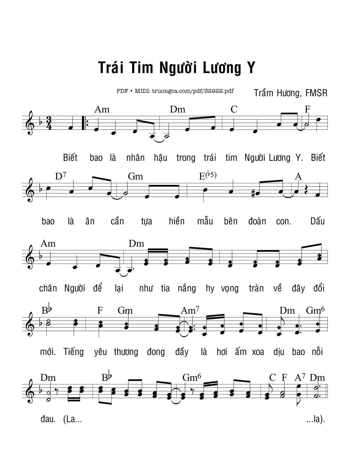Trang 1 của Sheet nhạc PDF bài hát Trái Tim Người Lương Y - Trầm Hương