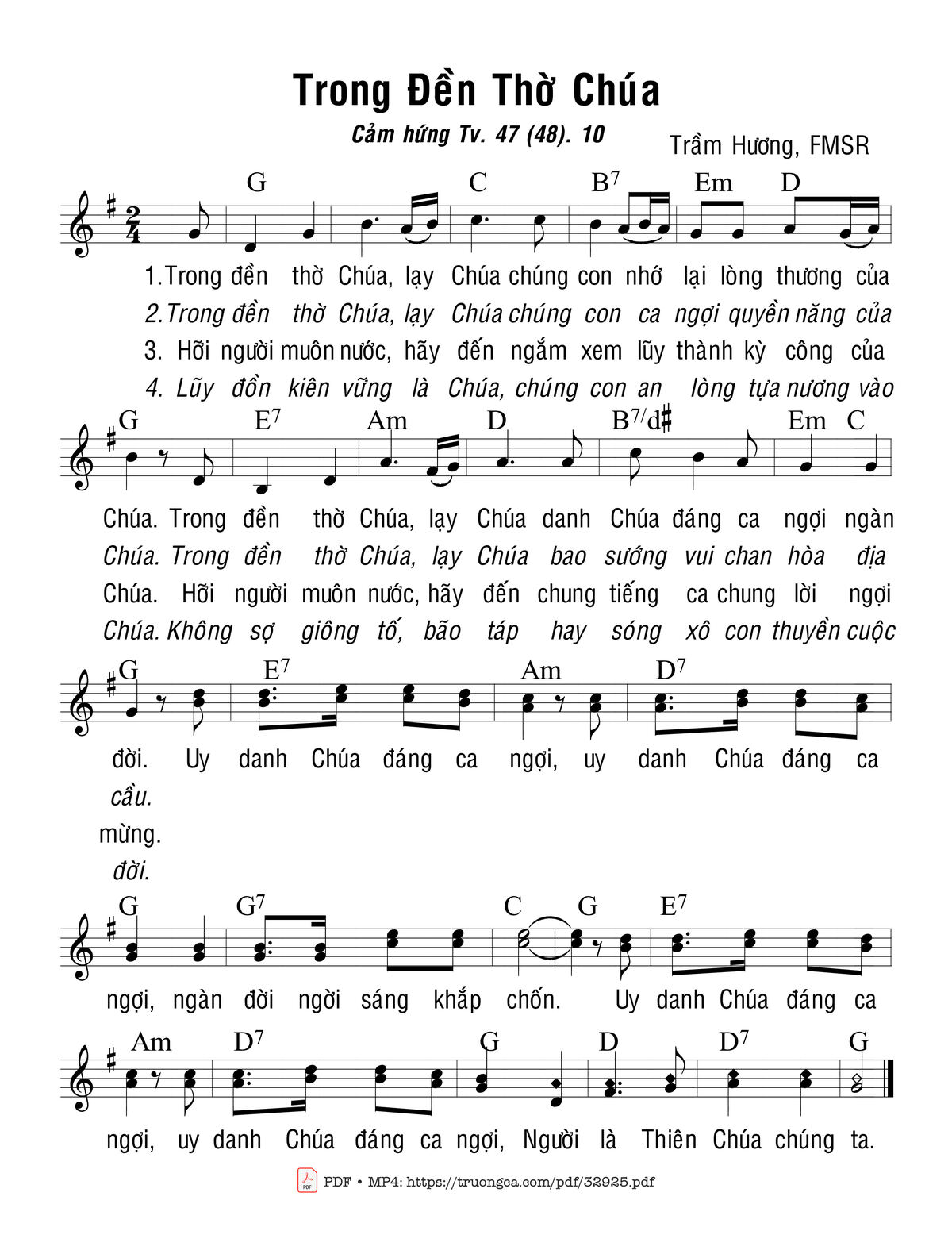 Trang 1 của Sheet nhạc PDF bài hát Trong Đền Thờ Chúa - Trầm Hương