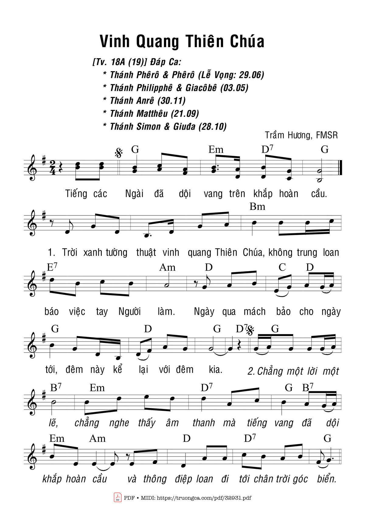 Trang 1 của Sheet nhạc PDF bài hát Vinh Quang Thiên Chúa - Trầm Hương