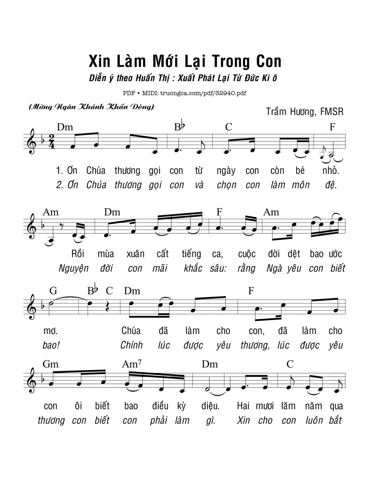 Trang 1 của Sheet nhạc PDF bài hát Xin Làm Mới Lại Trong Con - Trầm Hương