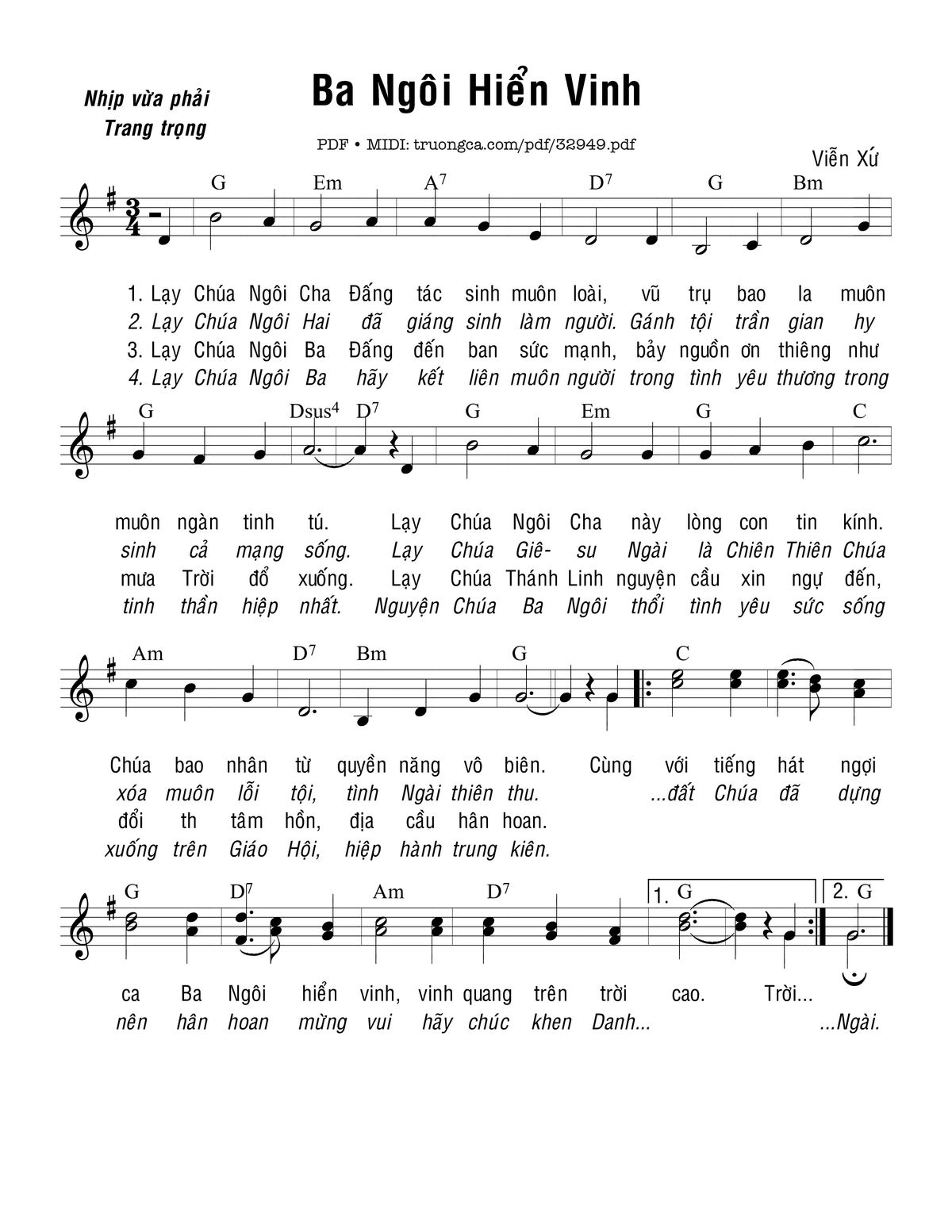 Trang 1 của Sheet nhạc PDF bài hát Ba Ngôi Hiển Vinh - Viễn Xứ