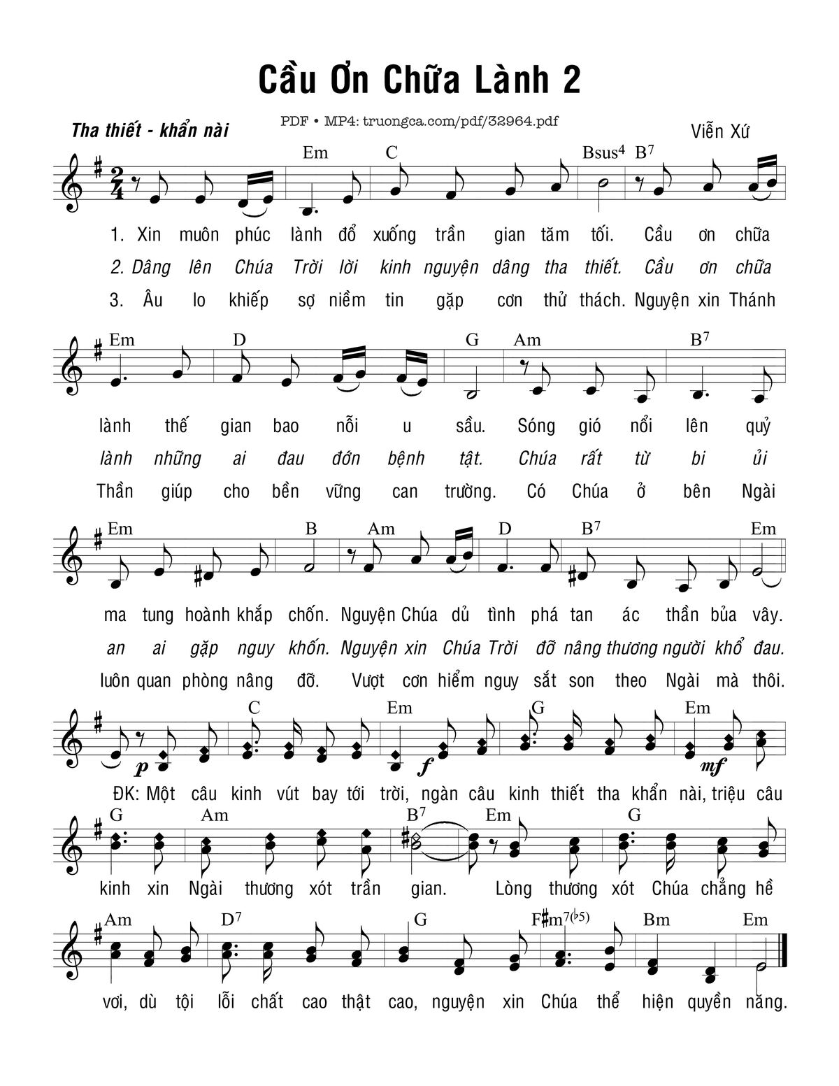 Trang 1 của Sheet nhạc PDF bài hát Cầu Ơn Chữa Lành 2 - Viễn Xứ