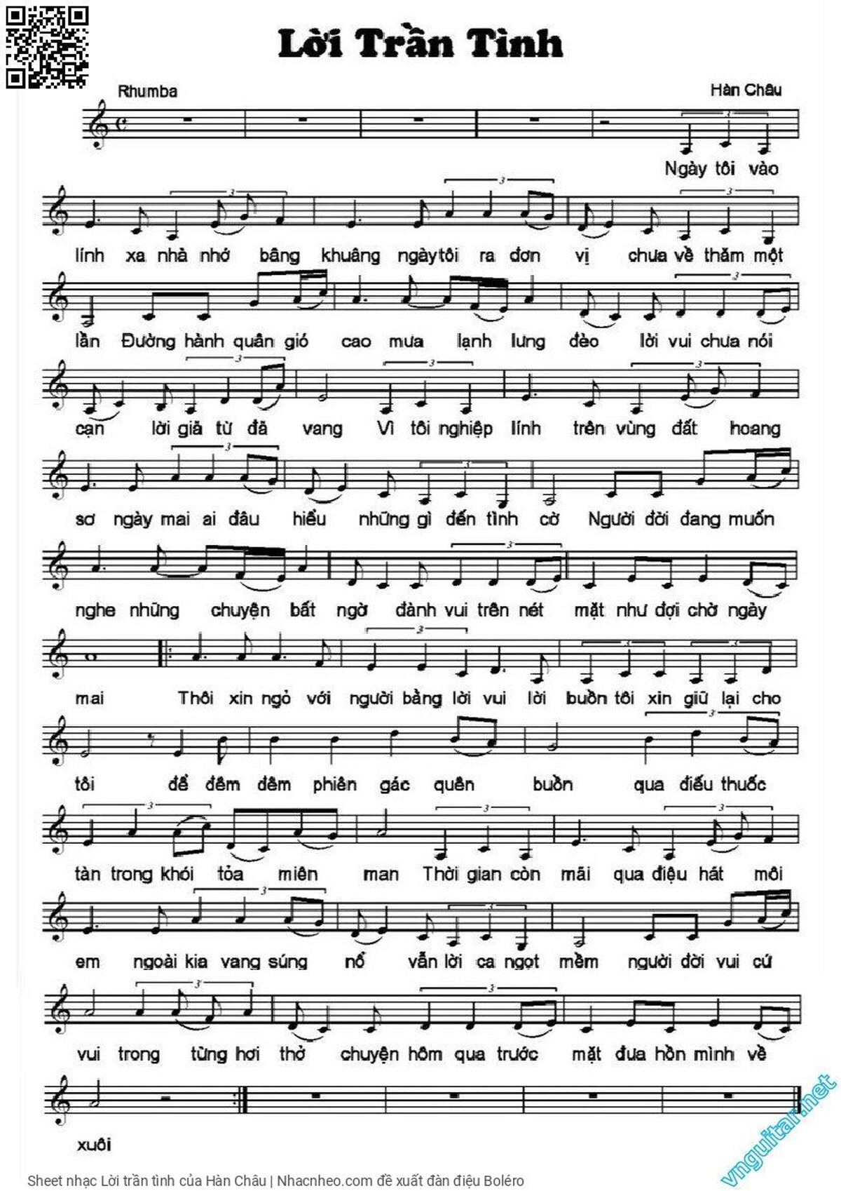Hàn Châu Ngày tôi vào lính xa nhà nhớ bâng khuâng [PDF] [Sheet] [Lời H.A] [Mp4/Midi]