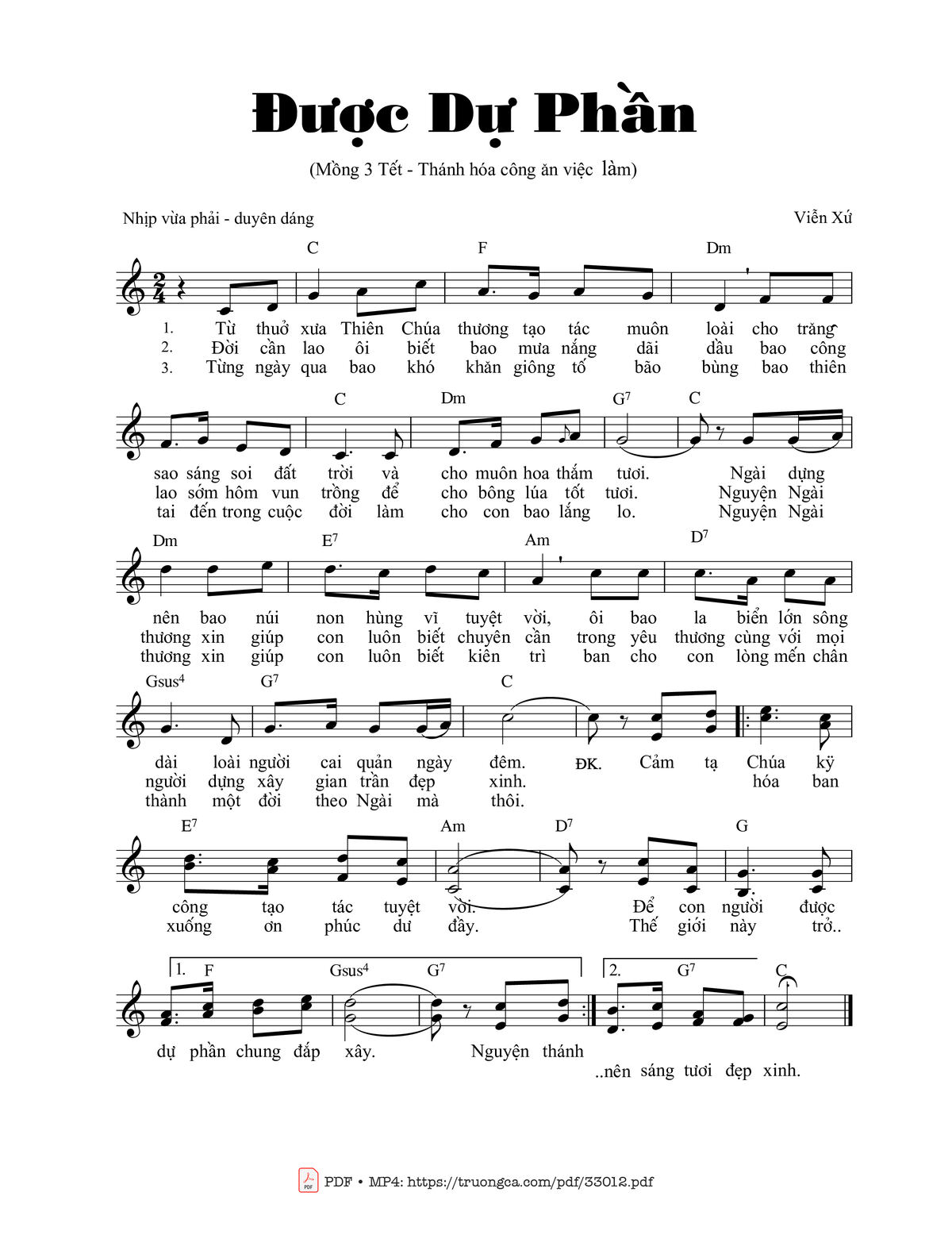Sheet Được Dự Phần – Mồng Ba Tết PDF, hợp âm