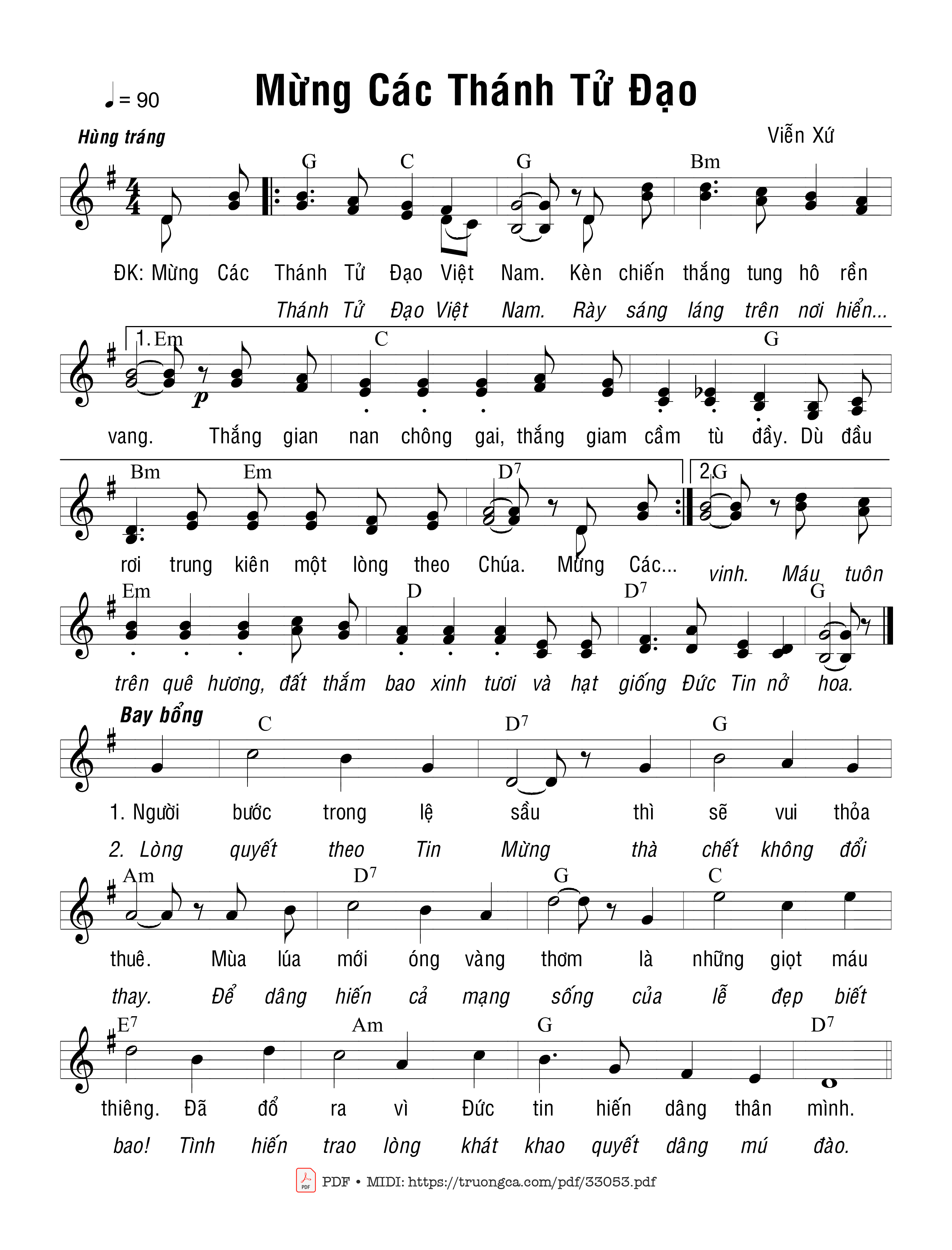 Sheet Mừng Các Thánh Tử Đạo PDF (Viễn Xứ), hợp âm