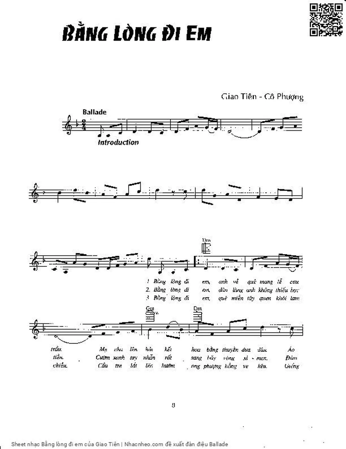 Giao Tiên Bằng lòng đi em anh về quê lo lễ cau trầu [PDF] [Sheet] [Lời H.A] [Mp4/Midi]