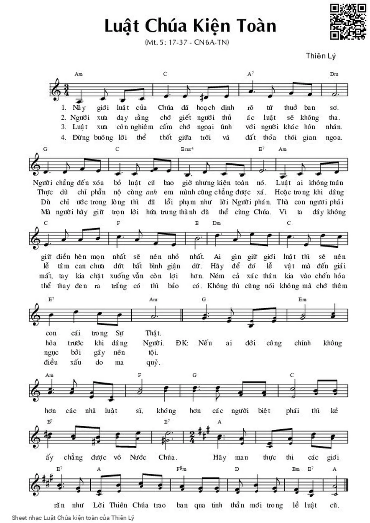 Thiên Lý Này giới luật của Chúa đã hoạch định rõ từ thuở ban sơ [PDF] [Sheet] [Lời H.A] [Mp4/Midi]