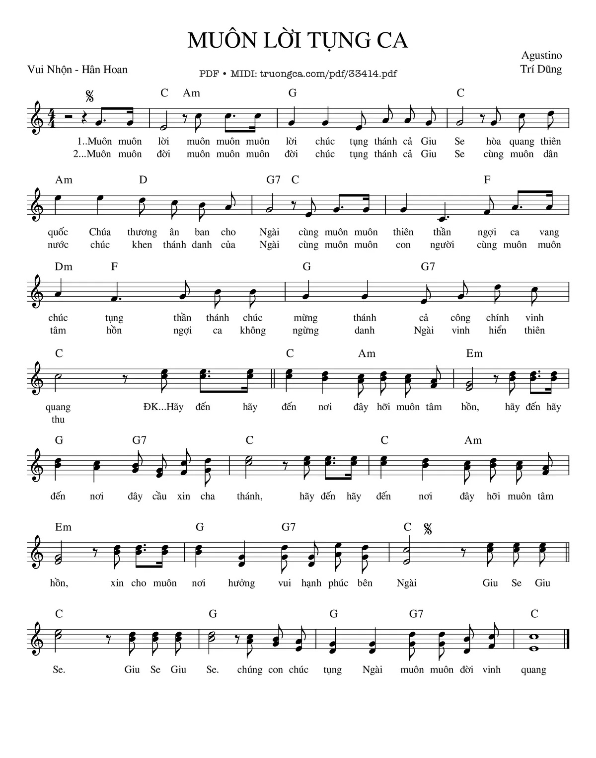 Trang 1 của Sheet nhạc PDF bài hát Muôn Lời Tụng Ca - Agustino Trí Dũng
