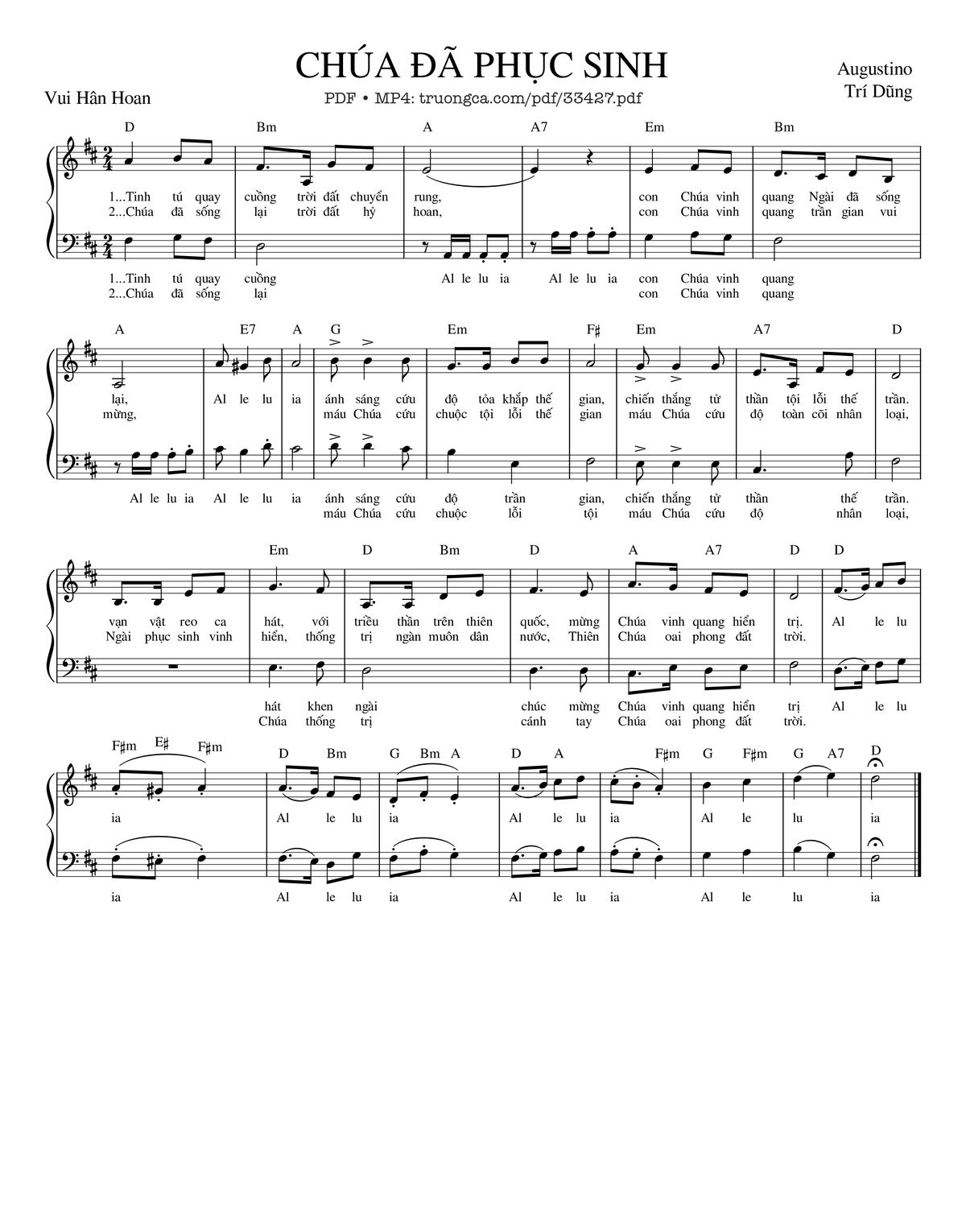 Trang 1 của Sheet nhạc PDF bài hát Chúa Đã Phục Sinh - Agustino Trí Dũng