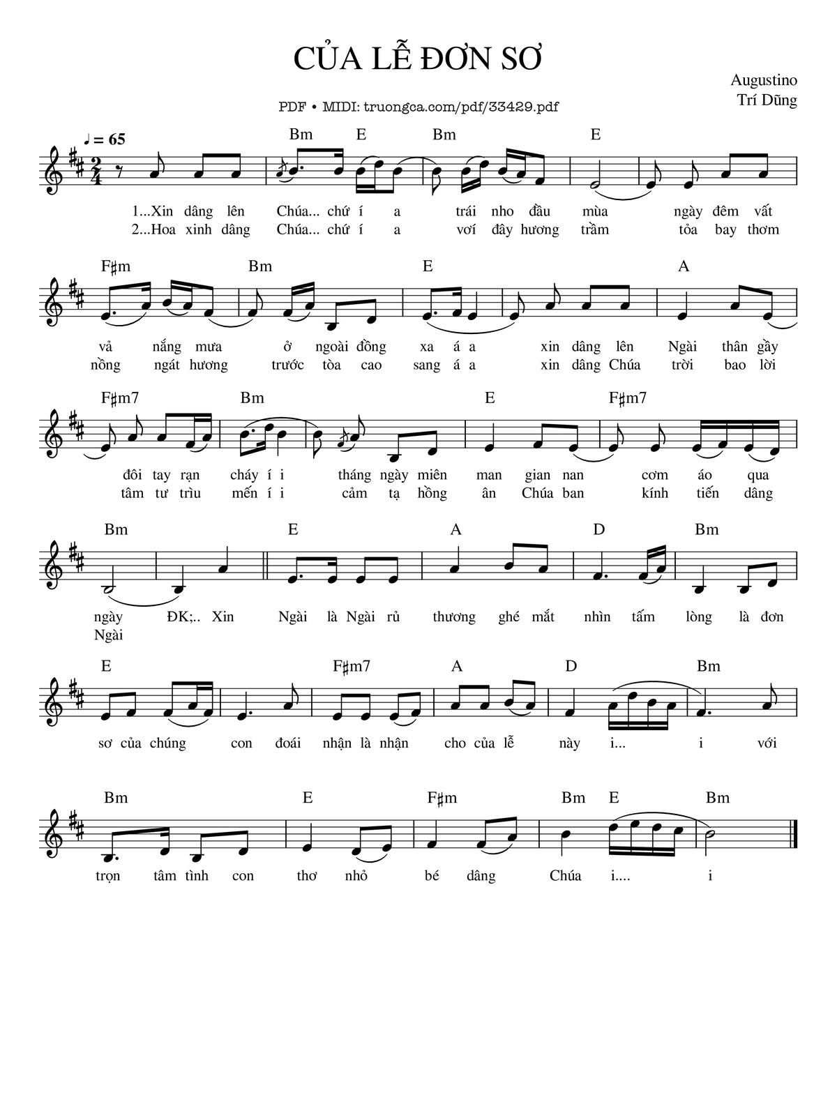 Sheet Của Lễ Đơn Sơ PDF (Agustino Trí Dũng), hợp âm