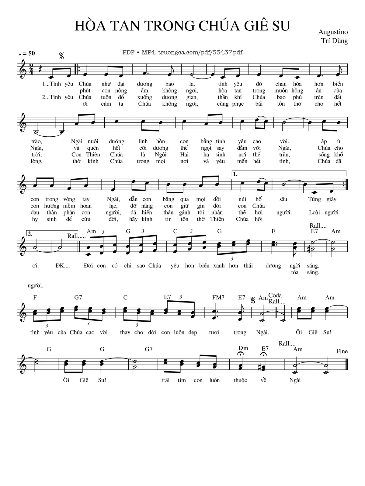 Trang 1 của Sheet nhạc PDF bài hát Hòa Tan Trong Chúa - Agustino Trí Dũng