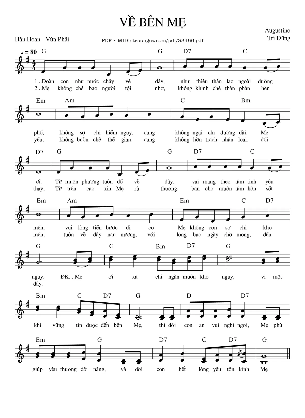 Sheet Về Bên Mẹ PDF (Agustino Trí Dũng), hợp âm