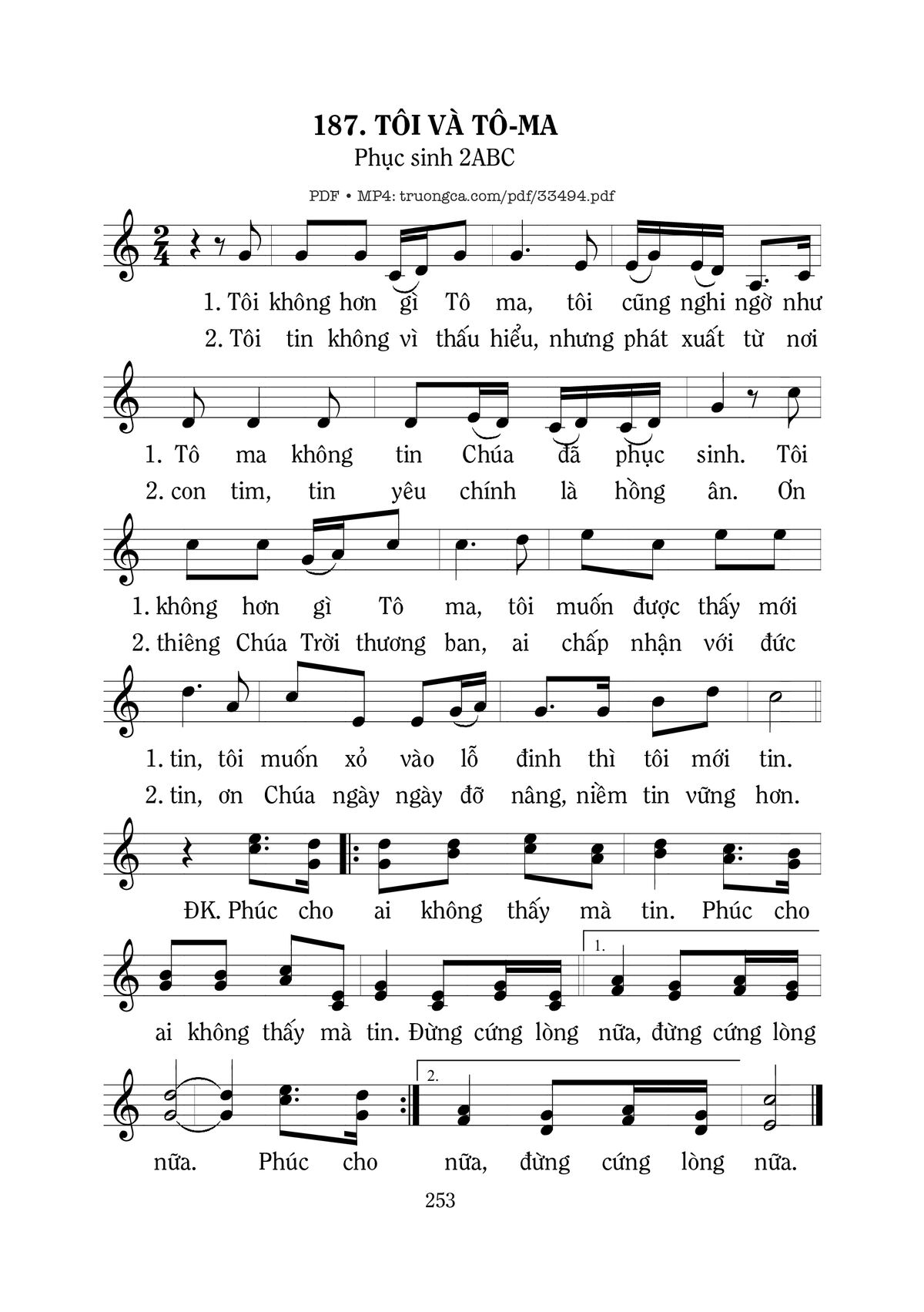 Sheet nhạc có nốt Tôi Và Tôma của nhạc sĩ Mi Trầm và file PDF nốt nhạc đăng lên đây nhằm giúp các bạn xướng âm cho đúng nốt và hát thêm hay, chỉ mang tính chất tham khảo, không có mục đích thương mại. Bản quyền thuộc về tác giả và tổ chức nắm bản quyền, Truongca.com không giữ bất kỳ bản quyền của nội dung nào cả. Các bạn có thể tải về bản PDF chất lượng cao, gồm khuông nhạc có nốt với đường link file PDF bên trên.