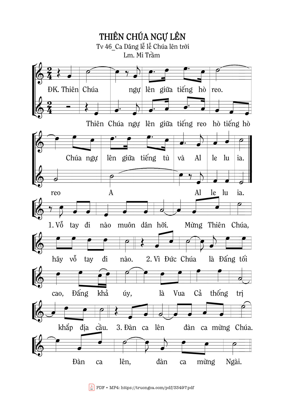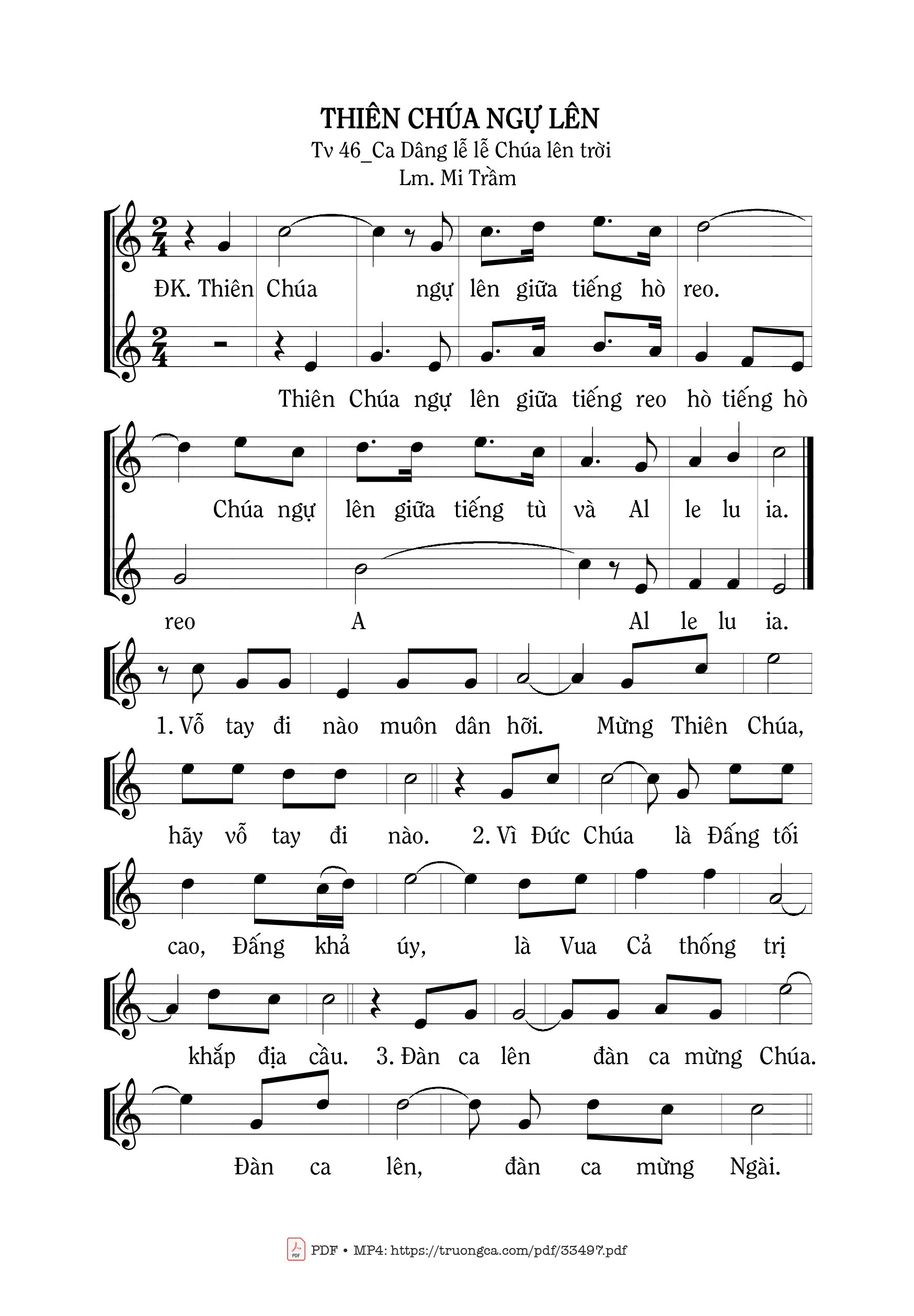 Sheet nhạc có nốt Thiên Chúa Ngự Lê của nhạc sĩ Mi Trầm và file PDF nốt nhạc đăng lên đây nhằm giúp các bạn xướng âm cho đúng nốt và hát thêm hay, chỉ mang tính chất tham khảo, không có mục đích thương mại. Bản quyền thuộc về tác giả và tổ chức nắm bản quyền, Truongca.com không giữ bất kỳ bản quyền của nội dung nào cả. Các bạn có thể tải về bản PDF chất lượng cao, gồm khuông nhạc có nốt với đường link file PDF bên trên.