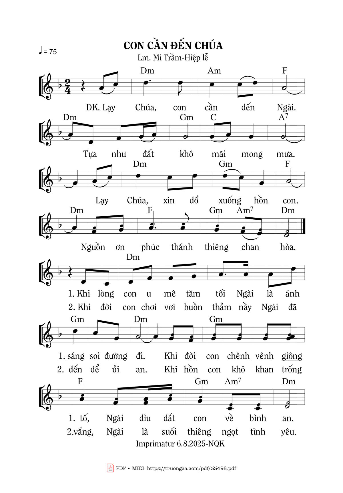 Trang 1 của Sheet nhạc PDF bài hát Con Cần Đến Chúa - Mi Trầm