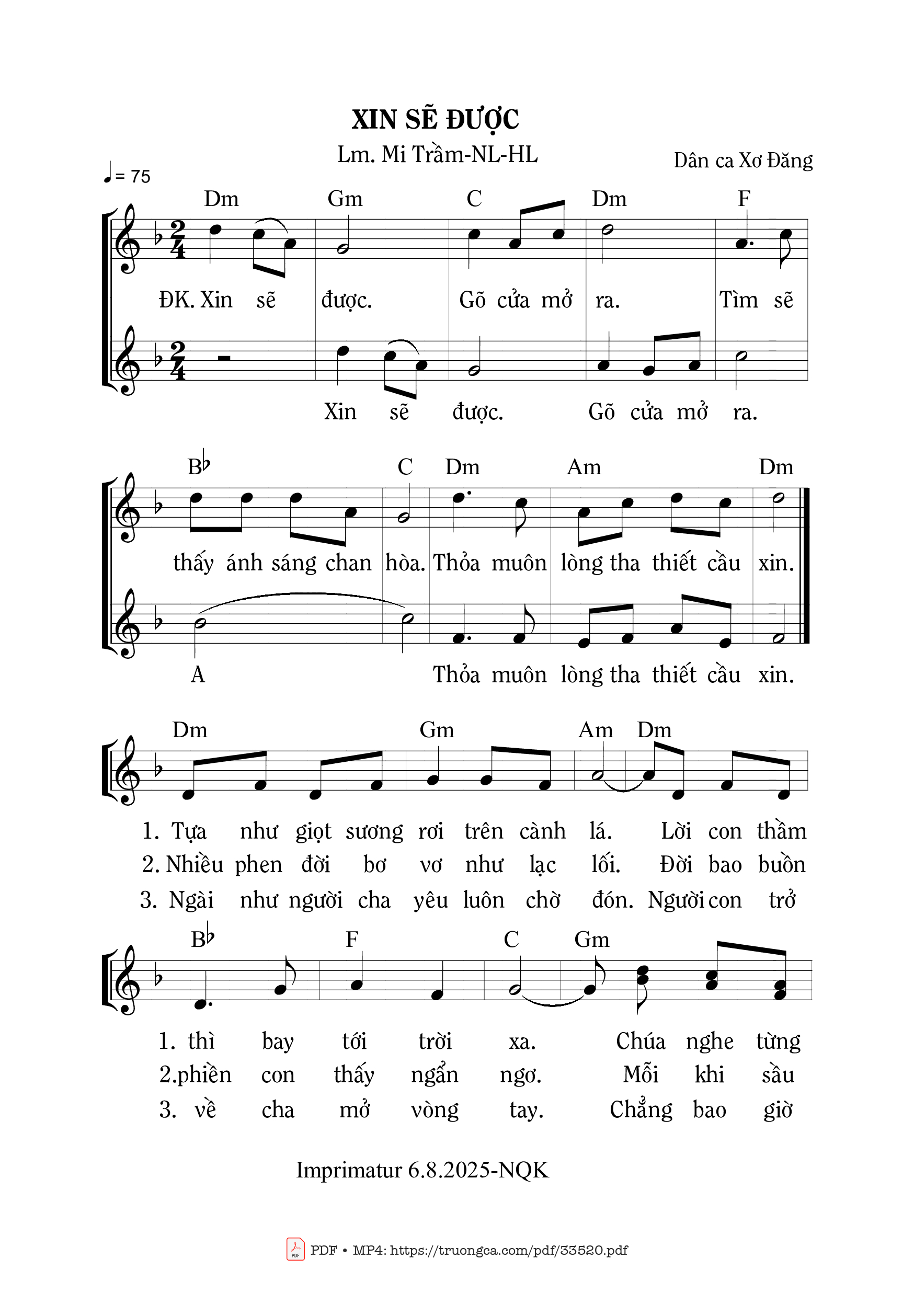 Trang 1 của Sheet nhạc PDF bài hát Xin Dẽ Được - Mi Trầm