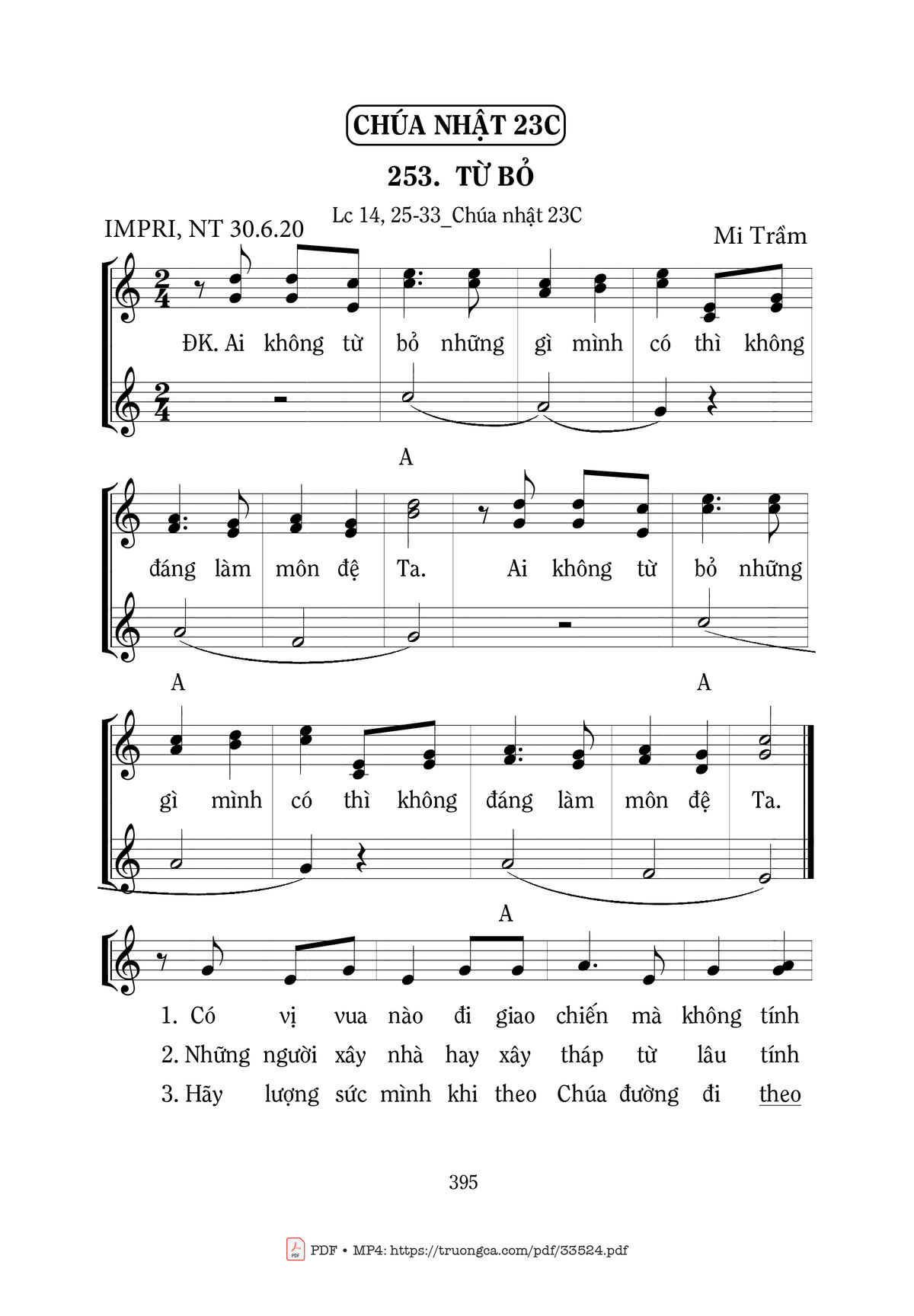 Mi Trầm Ai không từ bỏ những gì mình có thì không đáng làm môn đệ Ta [PDF] [Sheet] [Lời H.A] [Mp4/Midi]