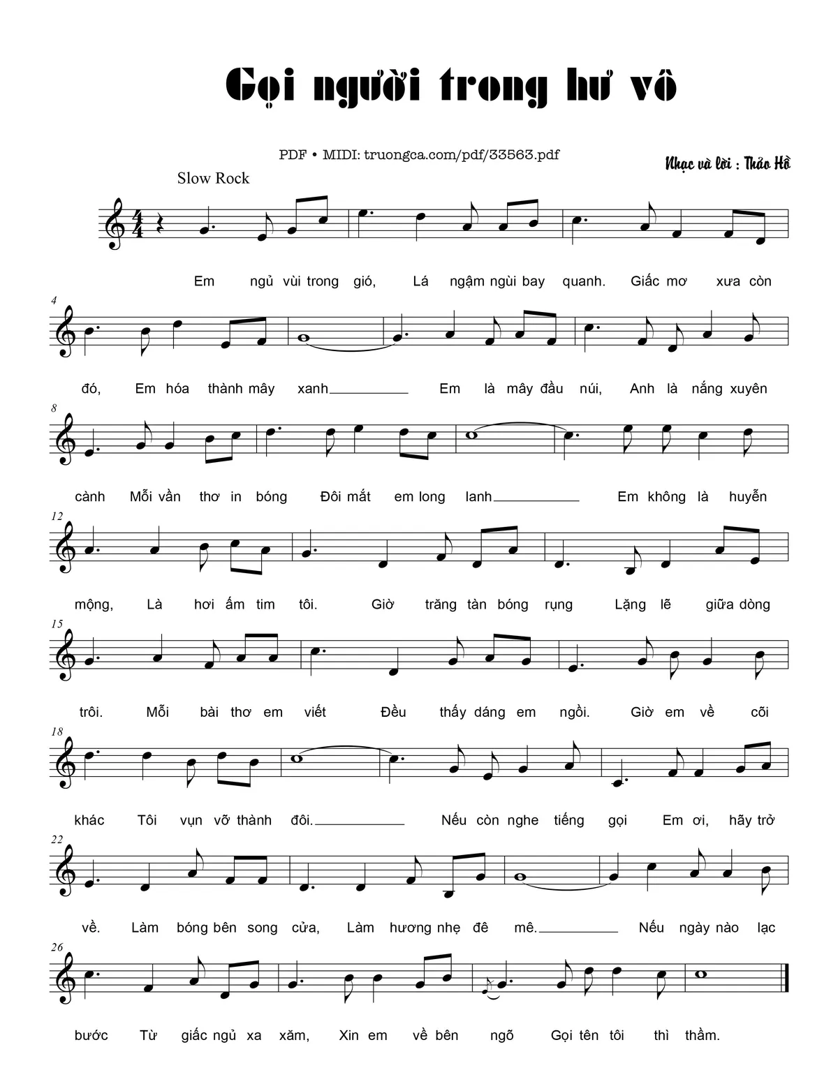 Thảo Hồ Em ngủ vùi trong gió Lá ngậm ngùi bay quanh [PDF] [Sheet] [Lời H.A] [Mp4/Midi]