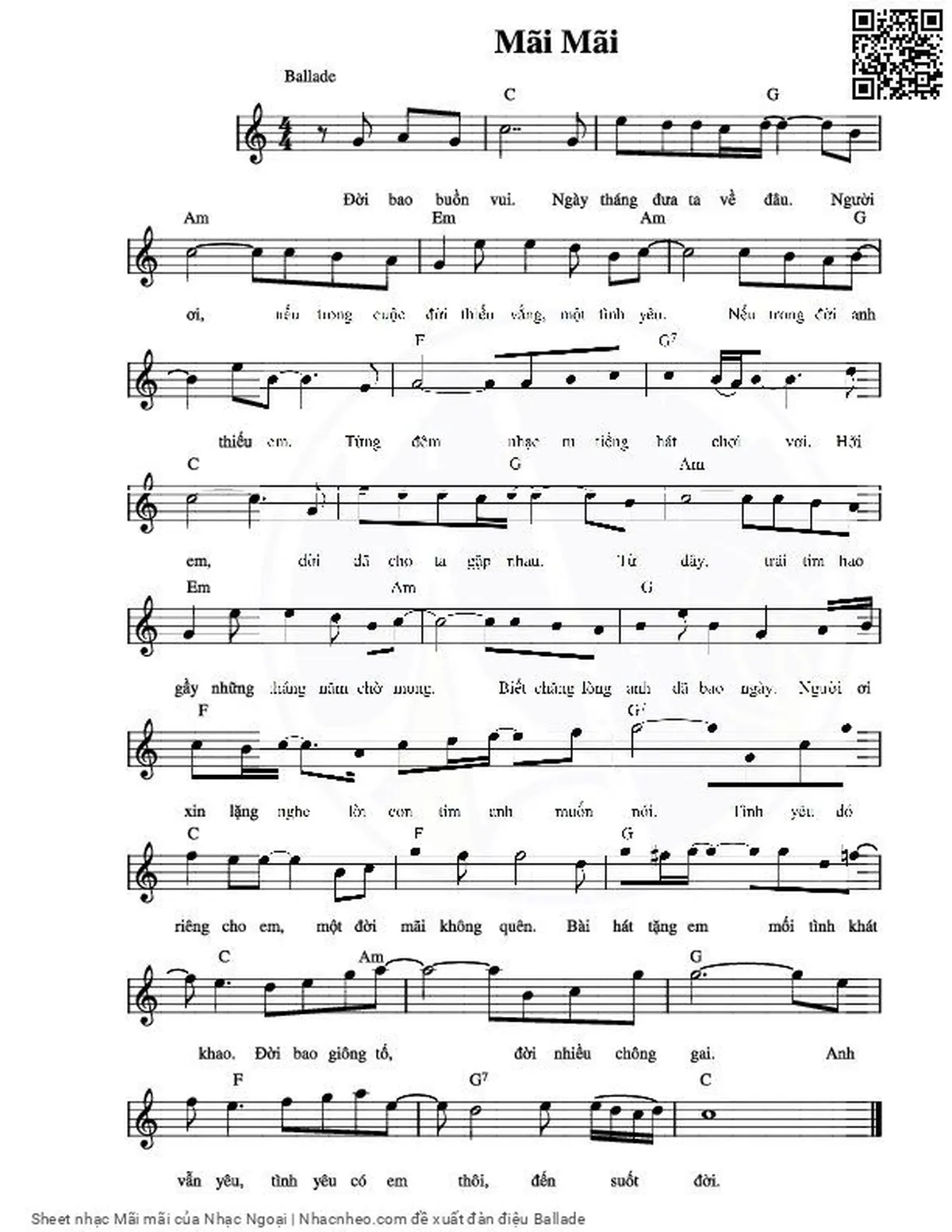 Phần nghe hát Mãi mãi (Nhạc Ngoại) được nhúng từ Youtube, Musescore hoặc link ngoài và chịu sự kiểm soát bản quyền của bên thứ ba đó, vì vậy có thể bị xóa hoặc chèn quảng cáo bất kỳ lúc nào. Nếu bạn không nghe - xem được ca sĩ hát tức là đã bị Youtube hoặc Musescore kiểm soát.