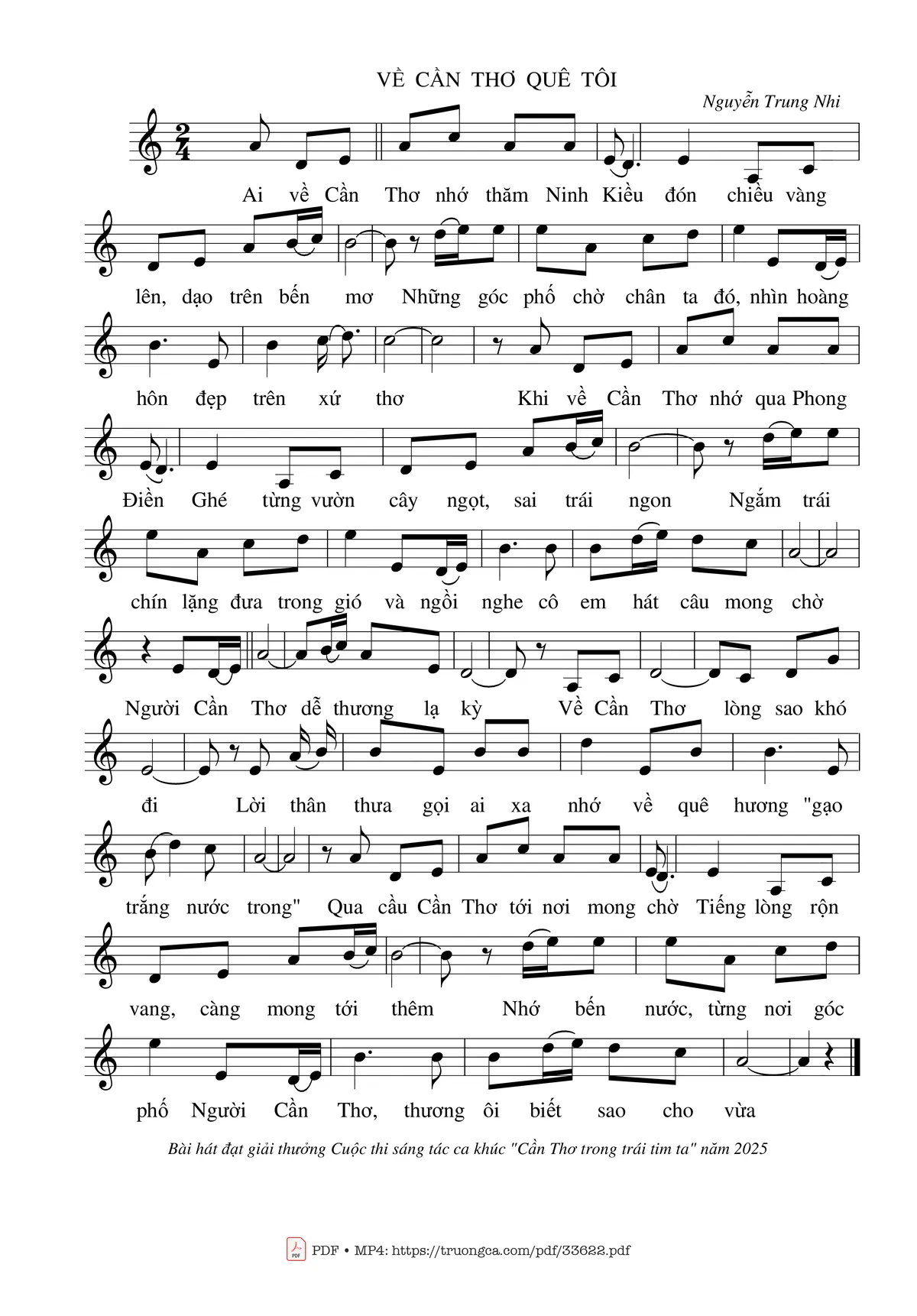 Nguyễn Trung Nhi Ai về Cần Thơ nhớ thăm Ninh Kiều Đón chiều vàng lên [PDF] [Sheet] [Lời H.A] [Mp4/Midi]