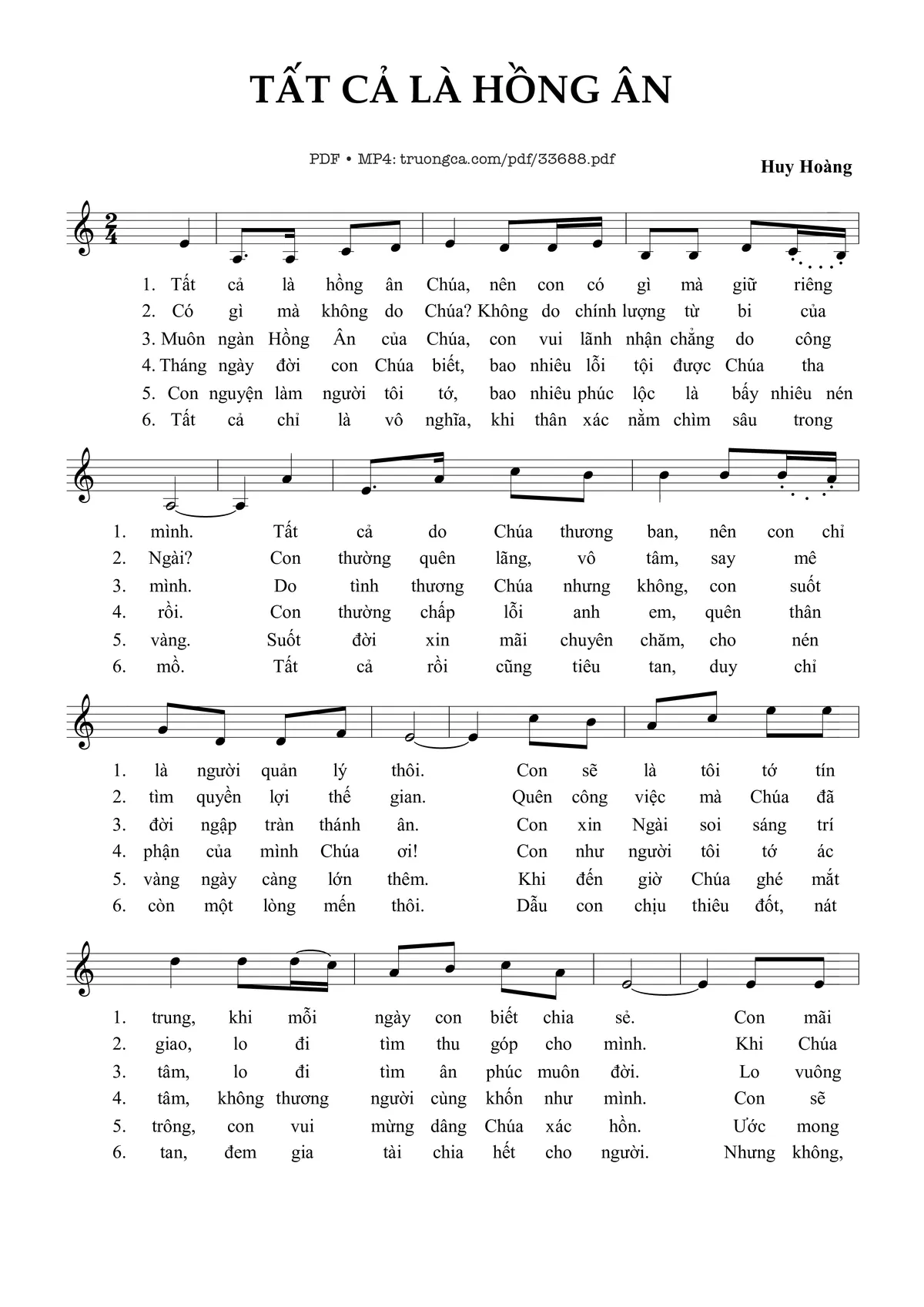 Huy Hoàng Tất cả là hồng ân Chúa nên con có gì mà giữ riêng mình [PDF] [Sheet] [Lời H.A] [Mp4/Midi]