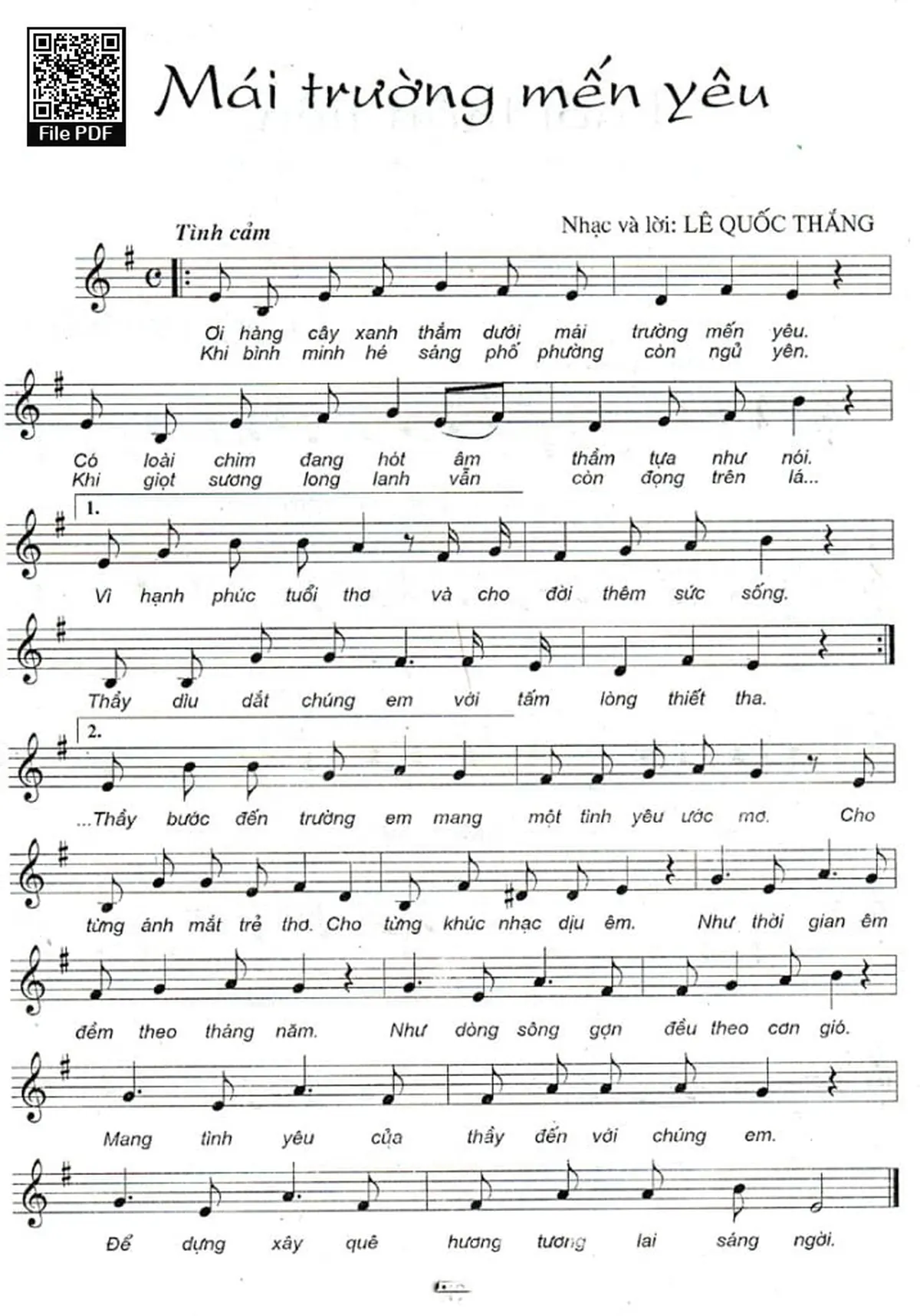 Lê Quốc Thắng Ôi hàng cây xanh thắm dưới mái trường mến yêu [PDF] [Sheet] [Lời H.A] [Mp4/Midi] [Lời bình - giai thoại]