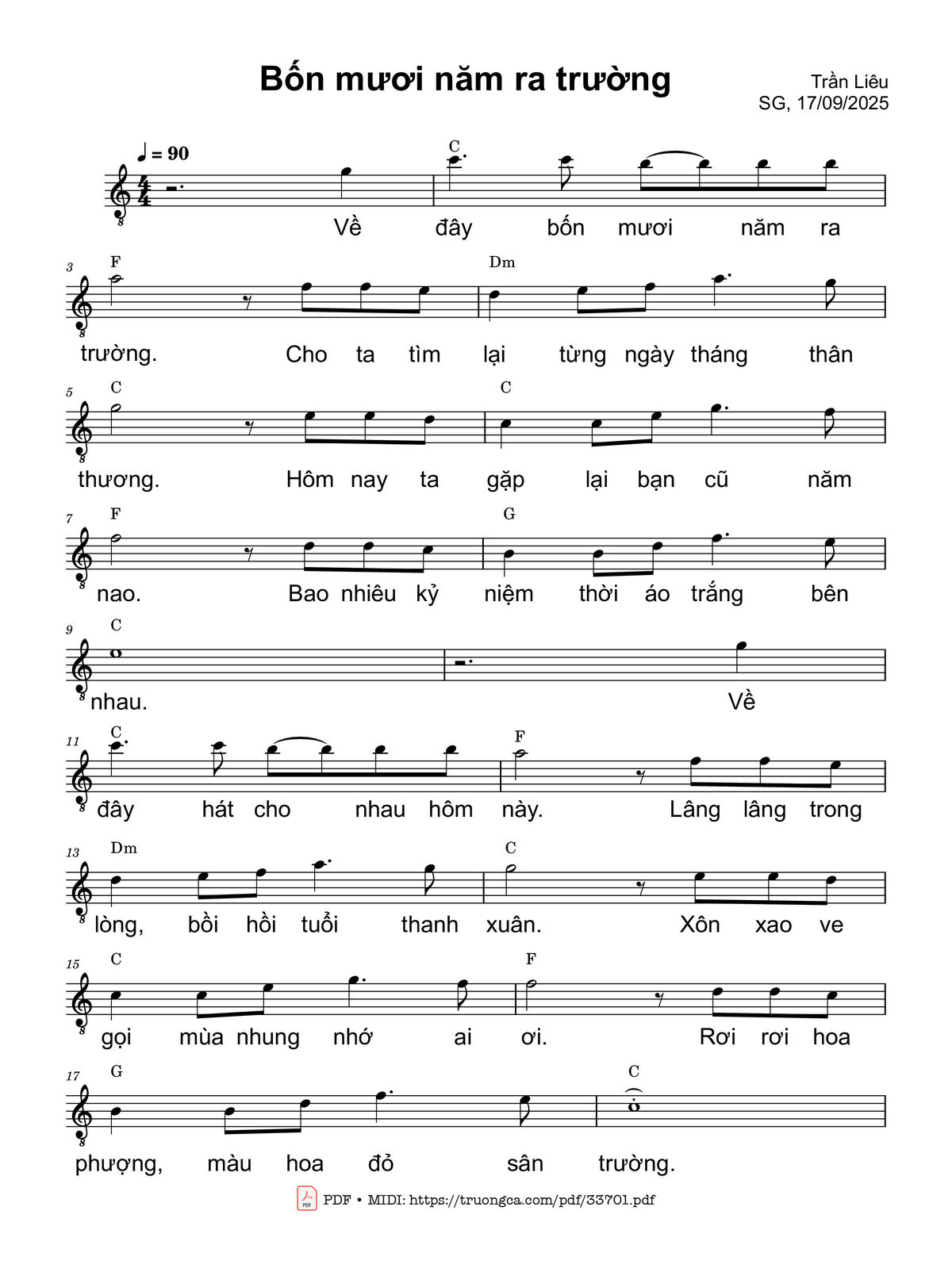 Trần Liêu Về đây bốn mươi năm ra trường Cho ta tìm lại từng ngày tháng thân thương [PDF] [Sheet] [Lời H.A] [Mp4/Midi]