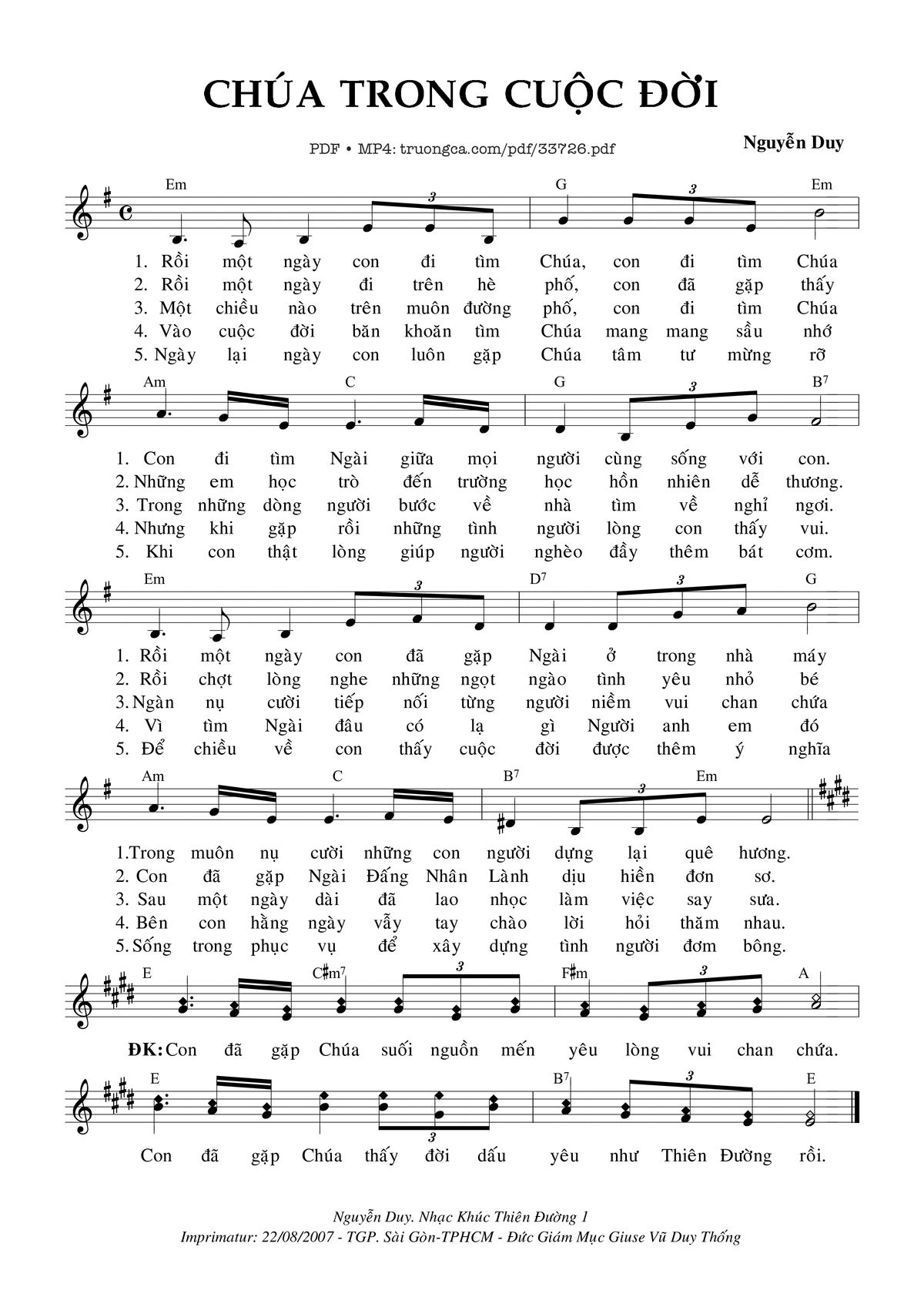 Nguyễn Duy Rồi một ngày con đi tìm Chúa con đi tìm Chúa [PDF] [Sheet] [Lời H.A] [Mp4/Midi]