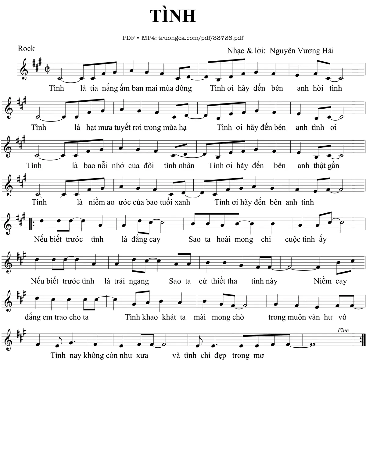 Nguyên Vương Hải Tình là tia nắng ấm ban mai mùa đông Tình ơi hãy đến bên anh hỡi tình [PDF] [Sheet] [Lời H.A] [Mp4/Midi]