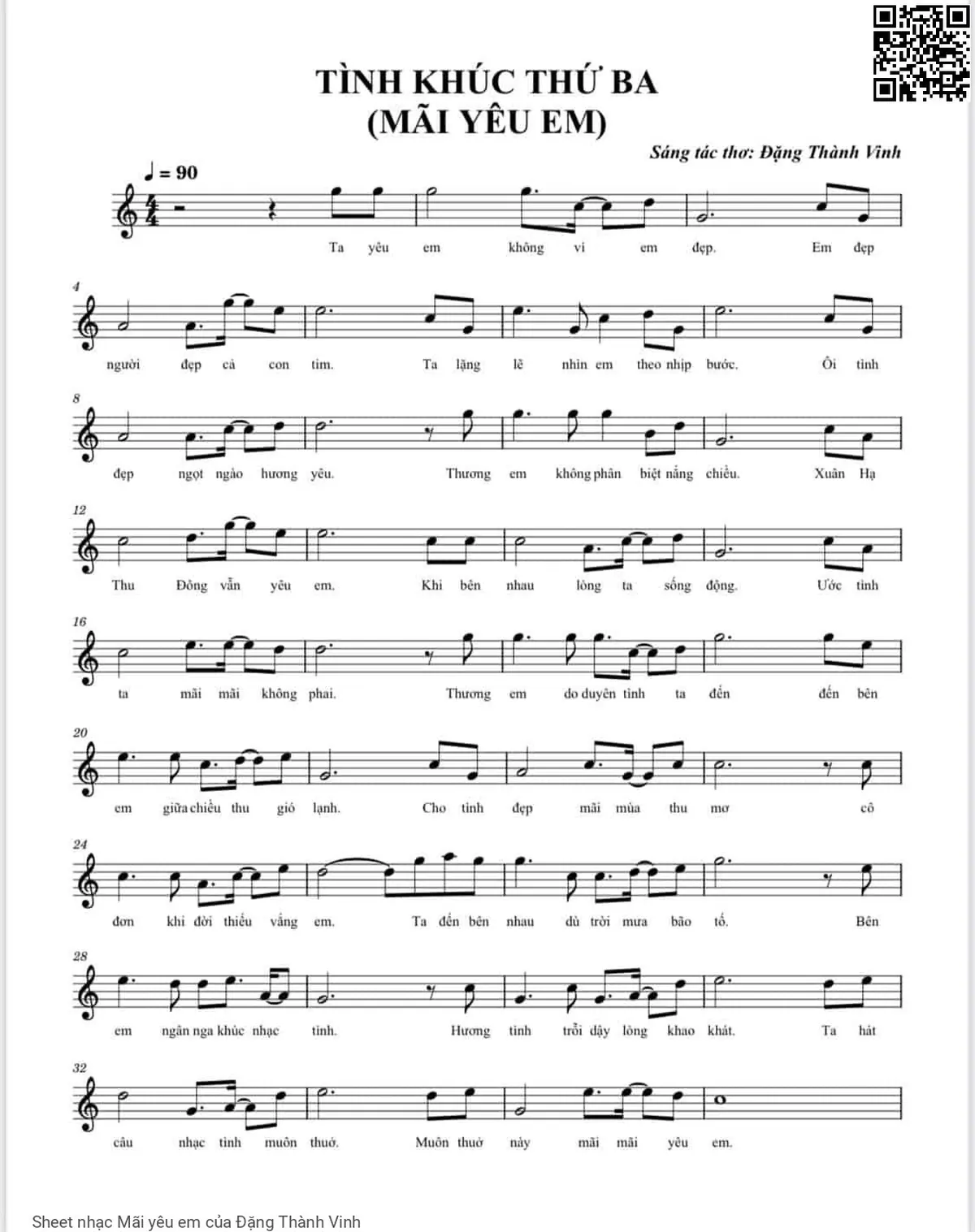 Đặng Thành Vinh Ta yêu em không vì em đẹp Em đẹp người đẹp cả con tim [PDF] [Sheet] [Lời H.A] [Mp4/Midi]
