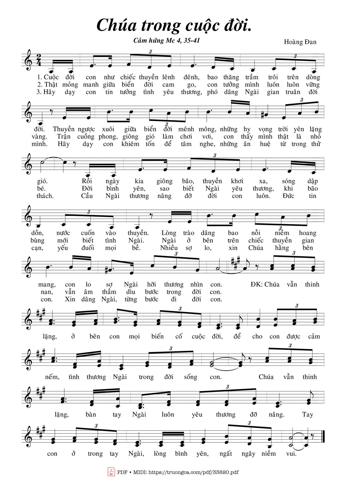 1. Cuộc đời con như chiếc thuyền lênh đênh, bao thăng trầm trôi trên dòng đời. Thuyền ngược xuôi giữa biển đời mênh mông, những hy vọng trời yên lặng gió. Rồi ngày kia giống bão, thuyền khơi xa, sóng dập dồn, nước cuốn vào thuyền. Lòng trào dâng bao nỗi niềm hoang mang, con lo sợ Ngài hỡi thương nhìn con.