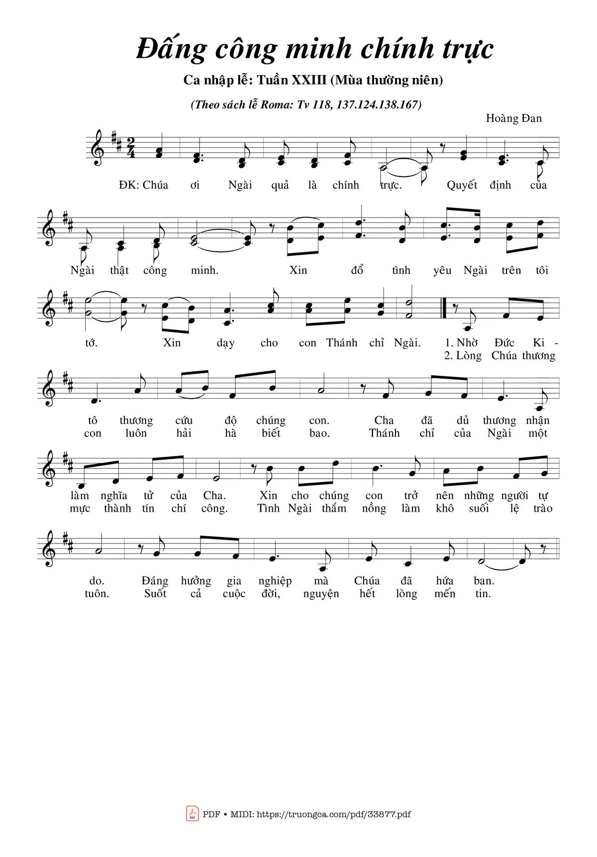 Điệp khúc: Chúa ơi, Ngài quả là chính trực. Quyết định của Ngài thật công minh. Xin đổ tình yêu Ngài trên tôi tớ. Xin dạy cho con Thánh Chỉ Ngài.
