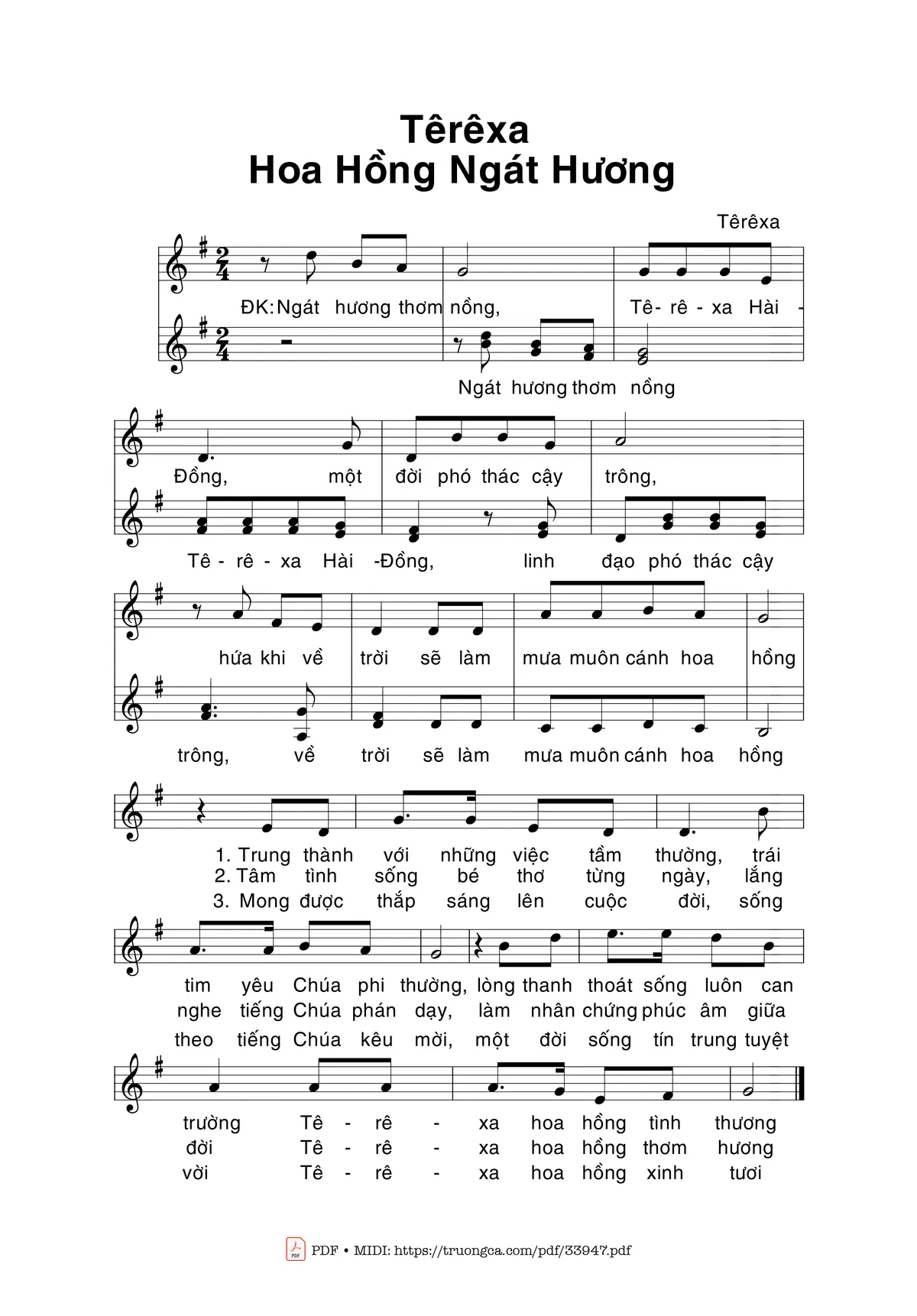 Các sheet PDF cùng tên Têrêsa Hoa Hồng Ngát Hương: