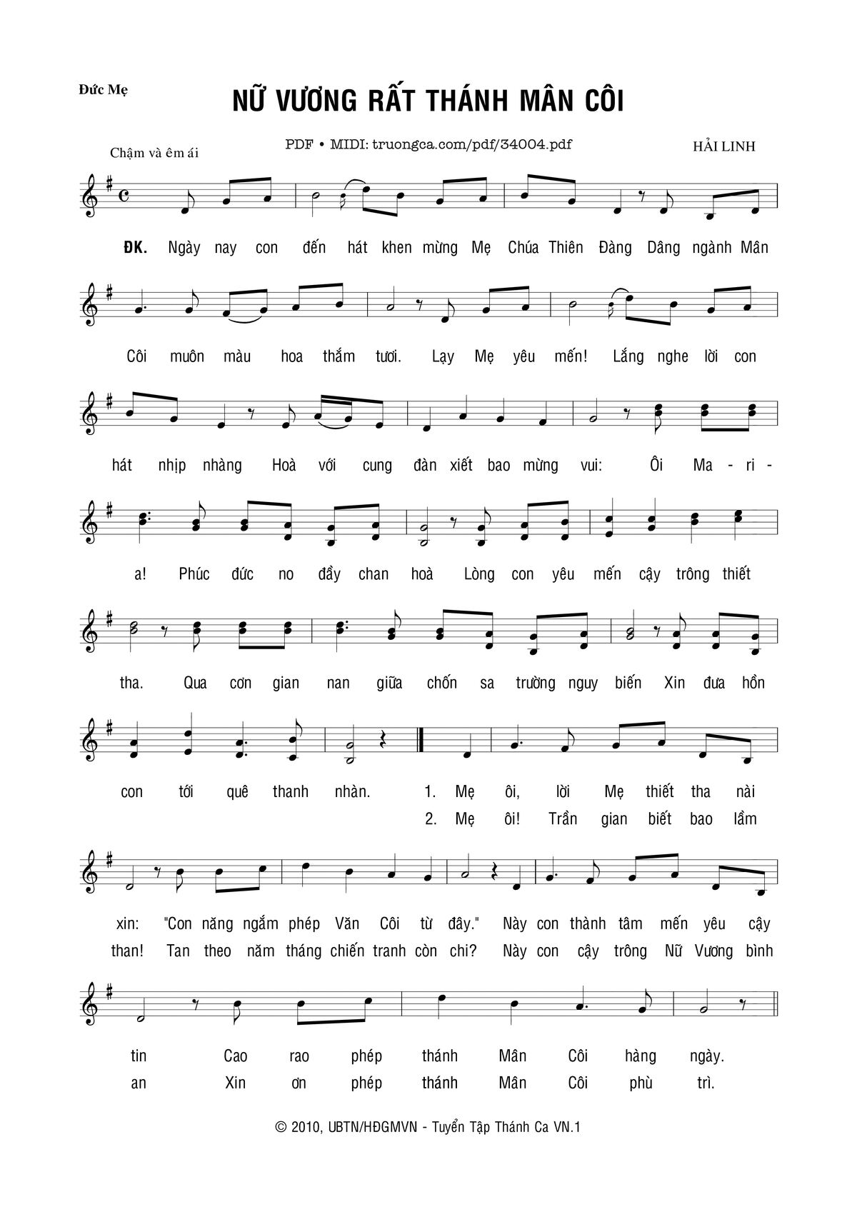 Hải Linh Ngày nay con đến hát khen mừng Mẹ Chúa thiên đàng [PDF] [Sheet] [Lời H.A] [Mp4/Midi]