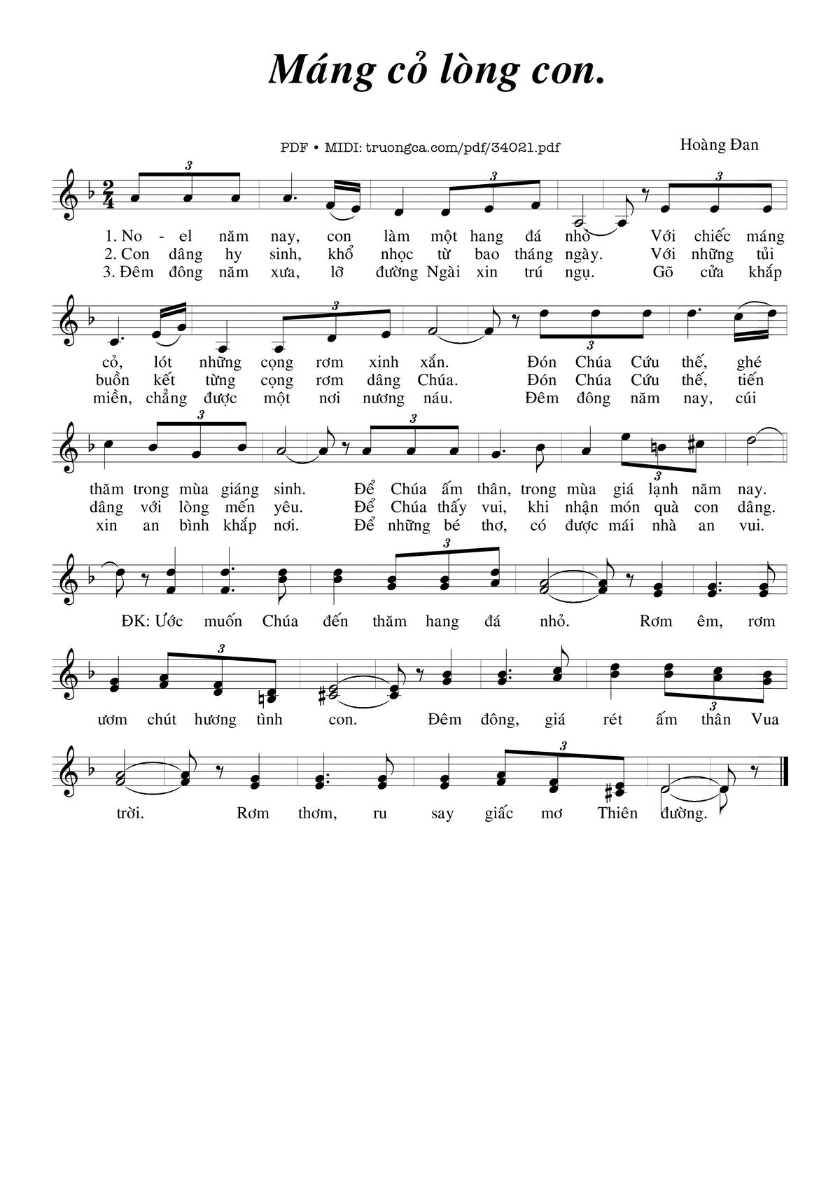 2. Con dâng hy sinh, khổ nhọc từ bao tháng ngày. Với những tủi buồn, kết từng cọng rơm dâng Chúa. Đón Chúa Cứu thế, tiến dâng với lòng mến yêu. Để Chúa thấy vui, khi nhận món quà con dâng.