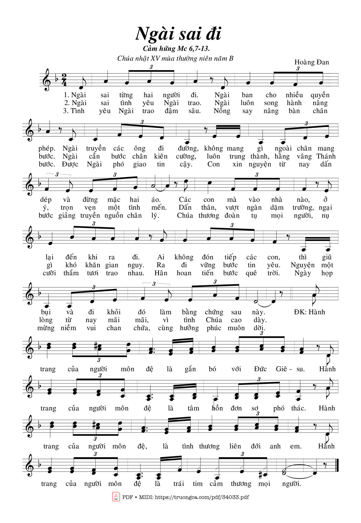 1. Ngài sai từng hai người đi. Ngài ban cho nhiều quyền phép. Ngài truyền các ông đi đường không mang gì, ngoài chân mang dép và đừng mặc hai áo. Các con mà vào nhà nào, ở lại đến khi ra đi. Ai không đón tiếp các con, thì giũ bụi và đi khỏi đó, làm bằng chứng sau này.