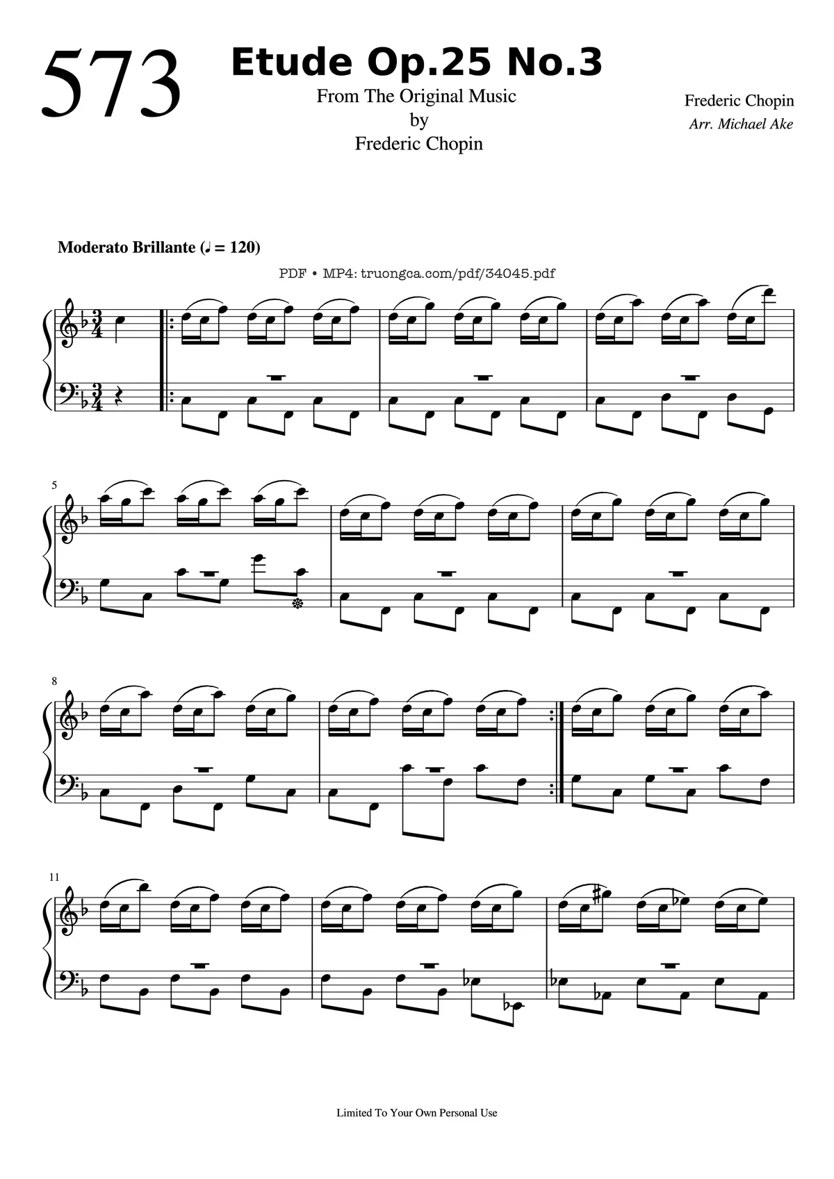 Các sheet PDF tương tự Etude Op.25 No.3 (The Knight) Piano EASY:
