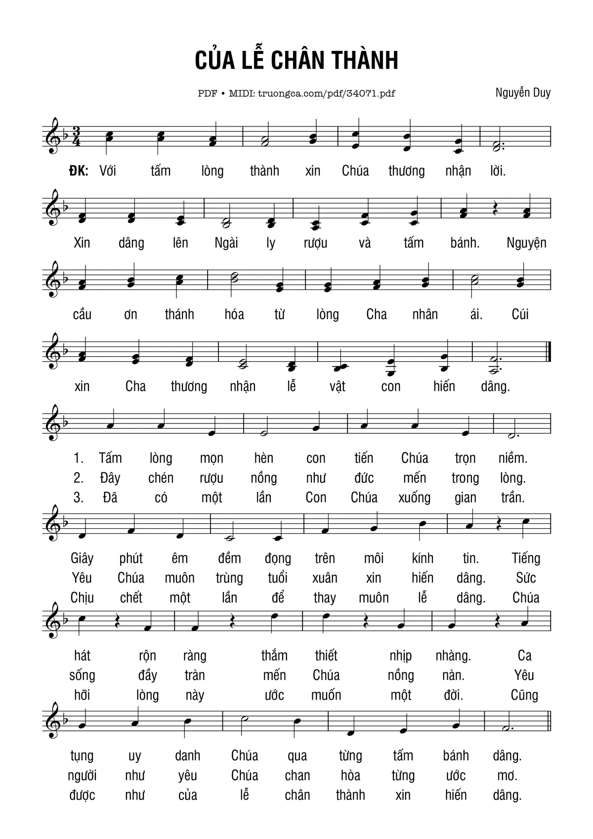 Nguyễn Duy Với tấm lòng thành xin Chúa thương nhận lời [PDF] [Sheet] [Lời H.A] [Mp4/Midi]