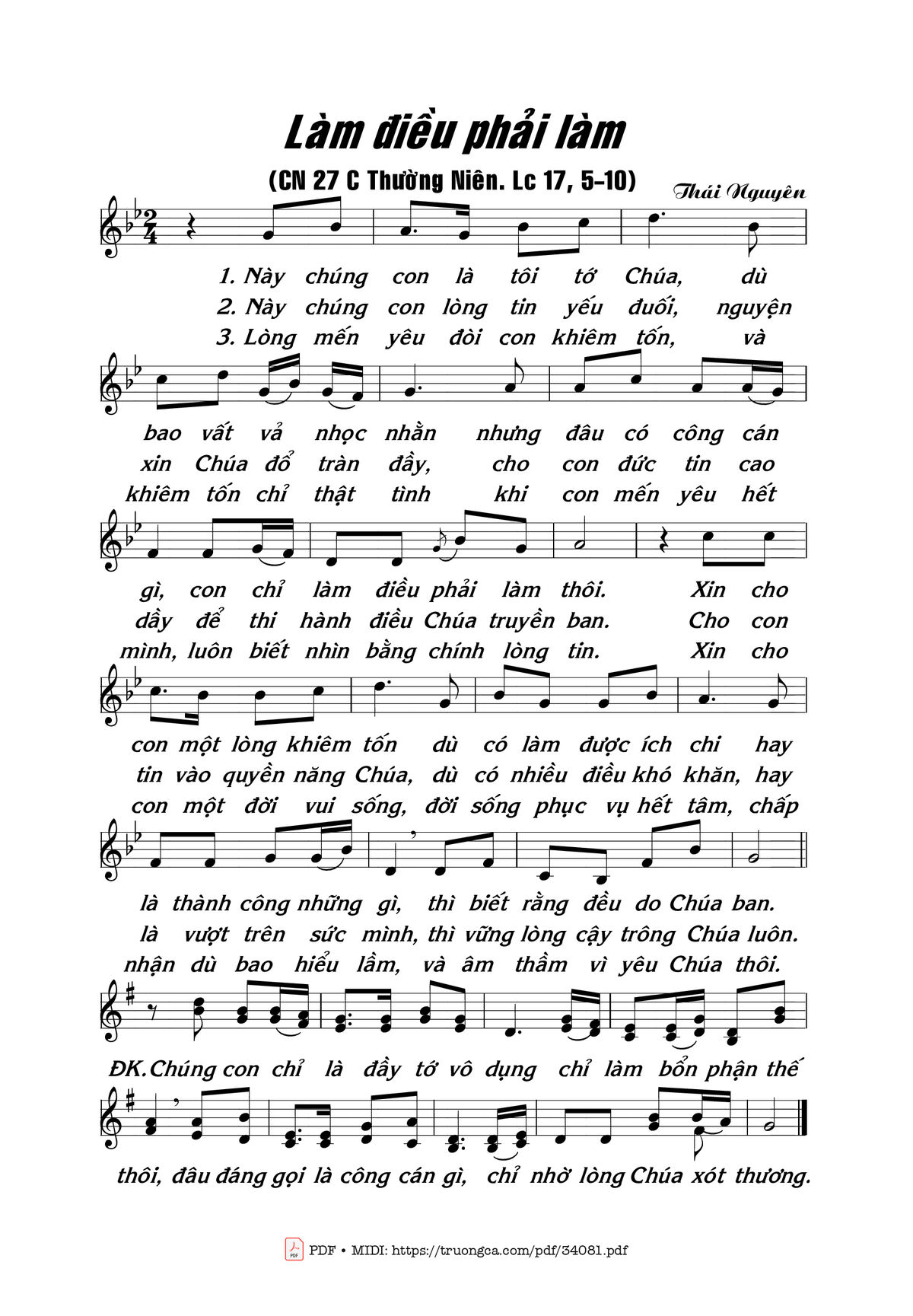 Thái Nguyên Này chúng con là tôi tớ Chúa dù bao vất vả nhọc nhằn [PDF] [Sheet] [Lời H.A] [Mp4/Midi]
