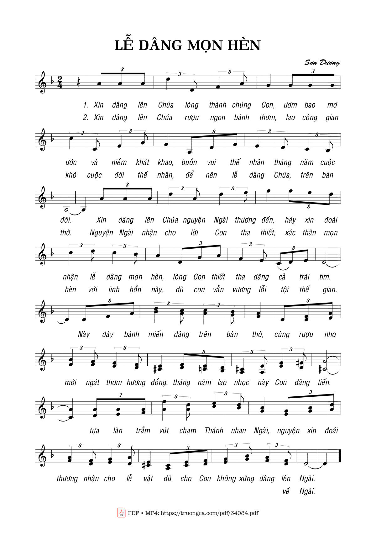 Phần nghe hát Lễ Dâng Mọn Hèn (Sơn Dương) được nhúng từ Youtube, Musescore hoặc link ngoài và chịu sự kiểm soát bản quyền của bên thứ ba đó, vì vậy có thể bị xóa hoặc chèn quảng cáo bất kỳ lúc nào. Nếu bạn không nghe - xem được ca sĩ hát tức là đã bị Youtube hoặc Musescore kiểm soát.