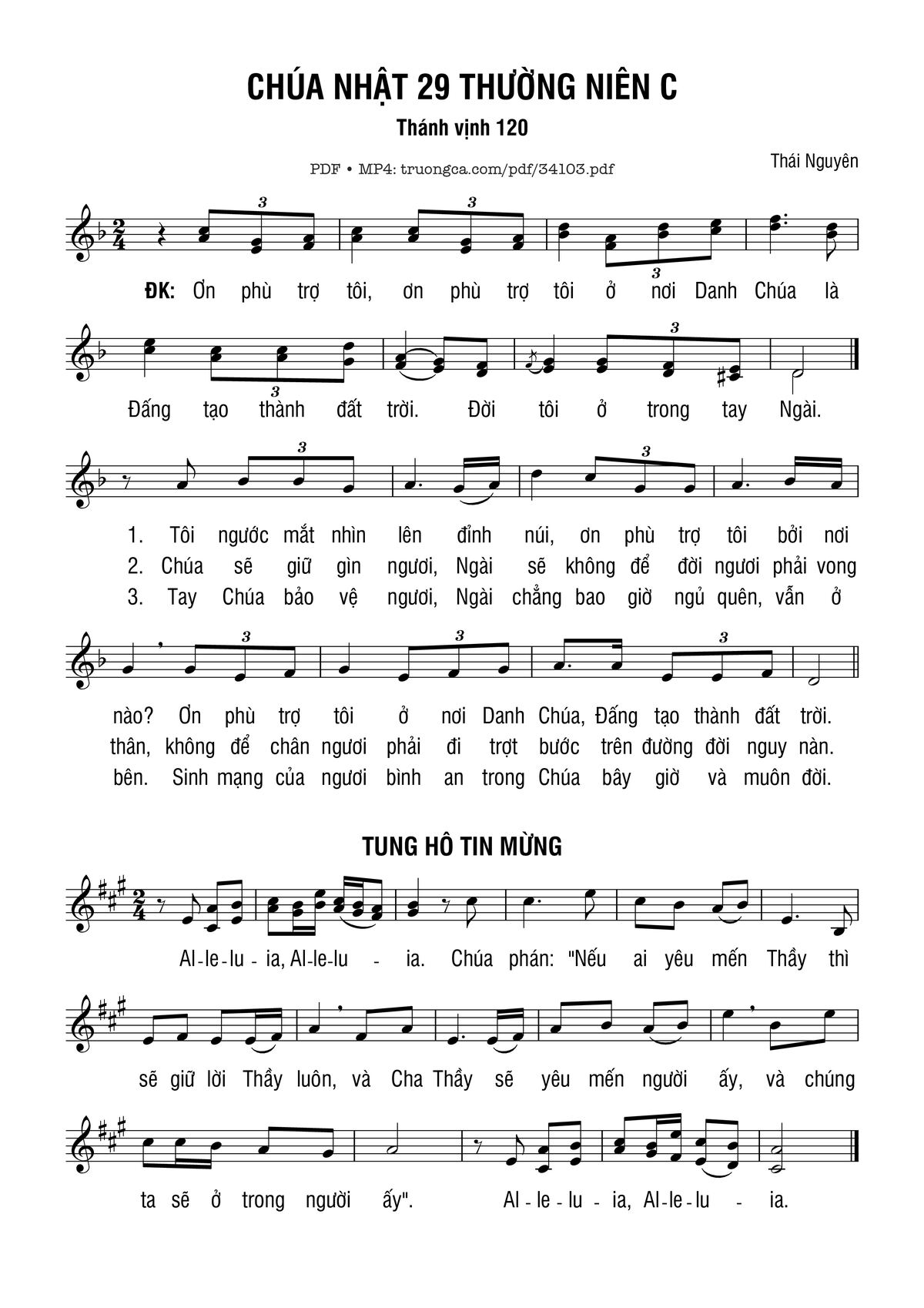 Các sheet PDF cùng tên Thánh Vịnh 120, Chúa Nhật 29C Thường Niên: